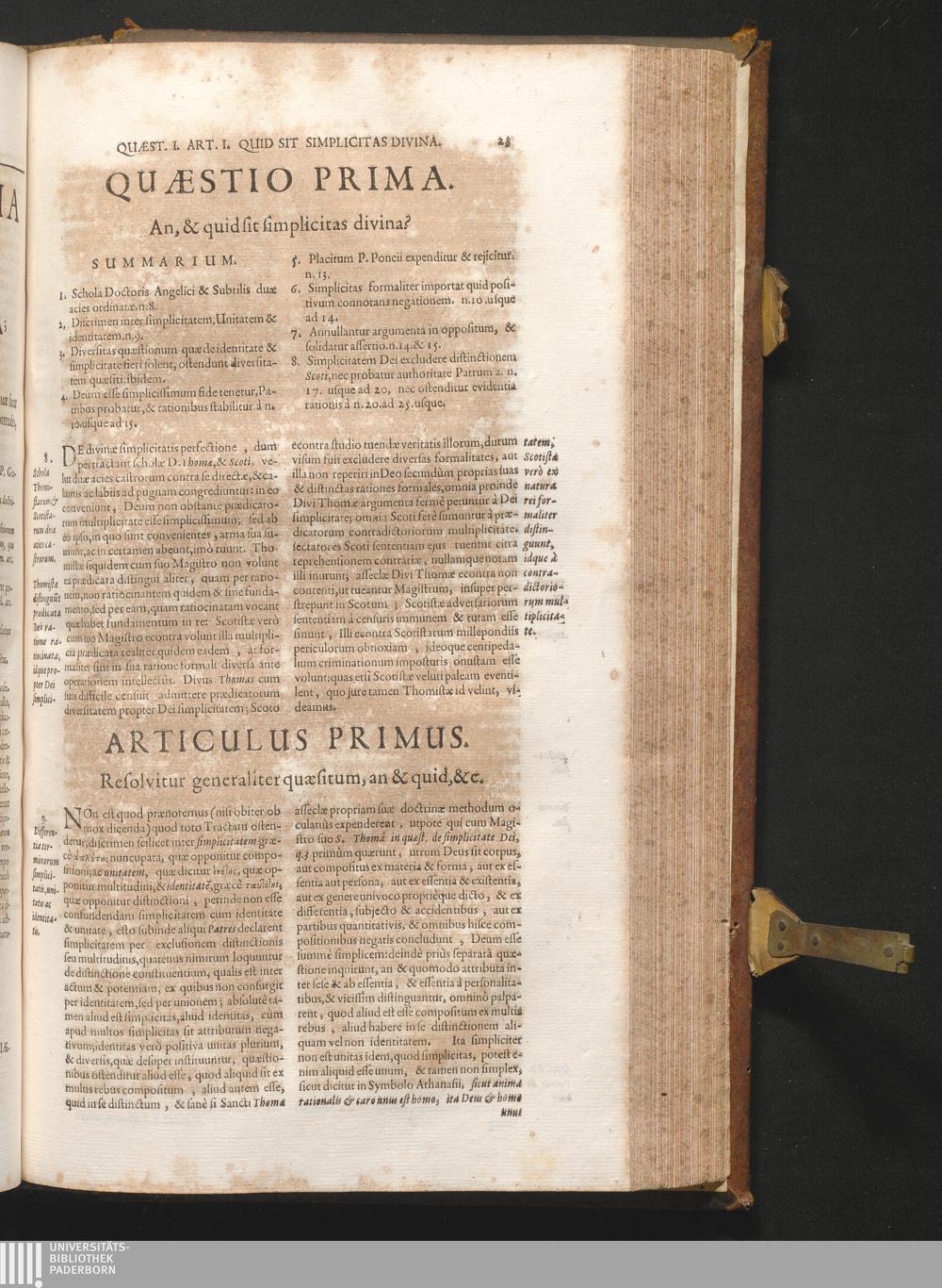 1-2 (1680) Controversiarum Inter Principes Cathedras Divi Thomæ Doctoris Angelici, Et Scoti Doctoris Svbtilis : Nec Non Aliarvm Illvstrissimarvm Scholarvm De Simplicitate Dei, Et Distinctione In Ipsa Deitatis Ac Identitatis Divinæ Abysso Latenter Recondita, Eaque Ad Divinam Simplicitatem Comparata Primum & Perenne Mobile ... In Dvos Divisvm Tomos / Auctore R. A. P. Friderico Stvmelio SS. Theol. Lectore Iubilato, Ord. FF. Min. Recollect. Provinciæ Thuringiæ S. Elisabethæ Patre