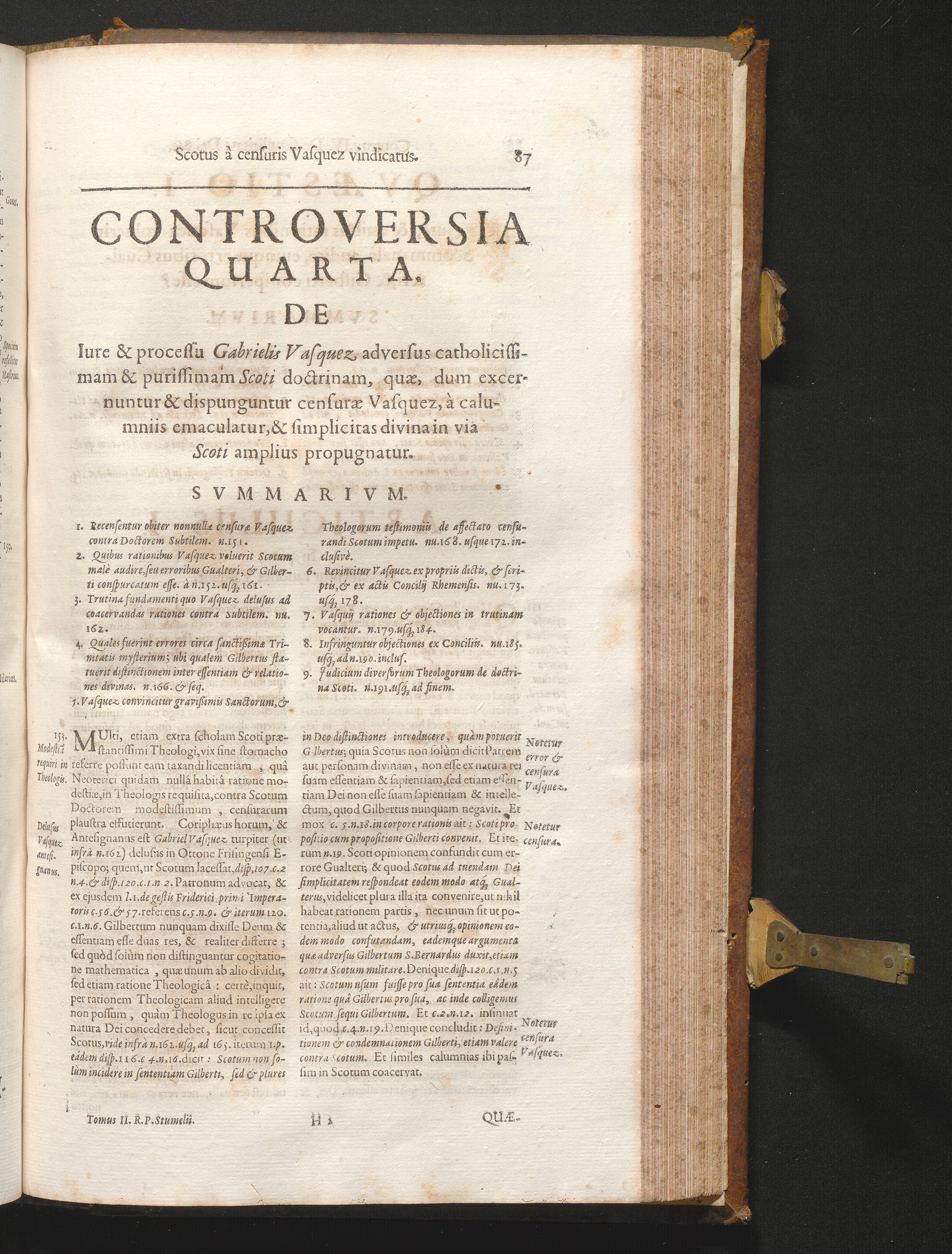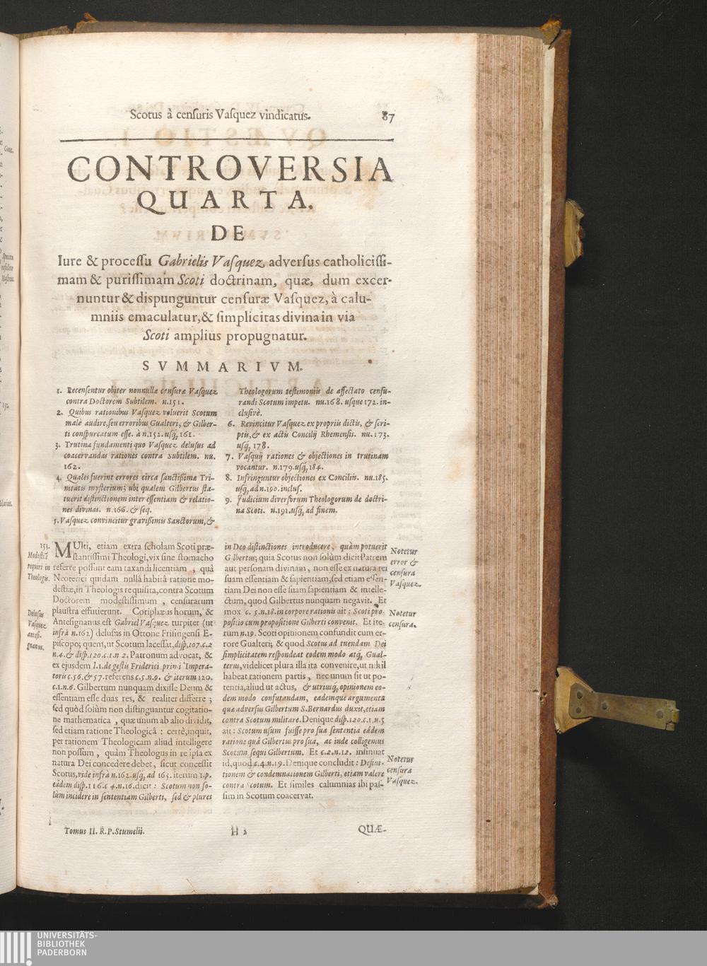 1-2 (1680) Controversiarum Inter Principes Cathedras Divi Thomæ Doctoris Angelici, Et Scoti Doctoris Svbtilis : Nec Non Aliarvm Illvstrissimarvm Scholarvm De Simplicitate Dei, Et Distinctione In Ipsa Deitatis Ac Identitatis Divinæ Abysso Latenter Recondita, Eaque Ad Divinam Simplicitatem Comparata Primum & Perenne Mobile ... In Dvos Divisvm Tomos / Auctore R. A. P. Friderico Stvmelio SS. Theol. Lectore Iubilato, Ord. FF. Min. Recollect. Provinciæ Thuringiæ S. Elisabethæ Patre