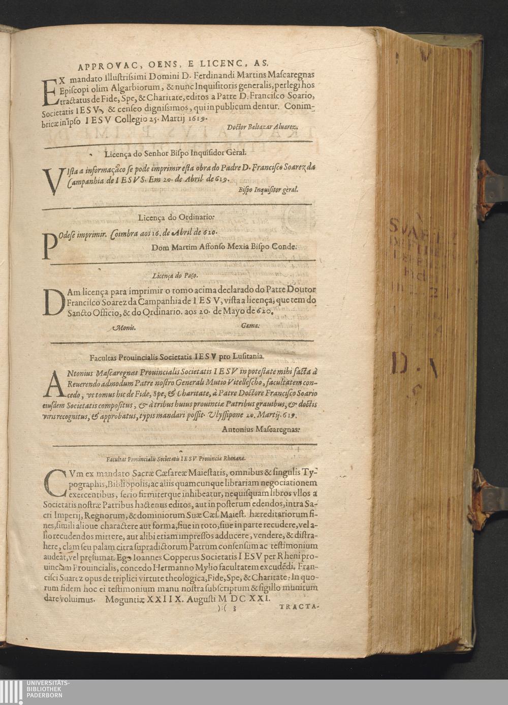 R. P. Francisci Svarez, Granatensis, E Societate Iesv Doctoris Theologi, Et In Conimbricensi Academia Olim Primarij Theologiæ Professoris emeriti, Opvs De Triplici Virtvte Theologica, Fide, Spe, Et Charitate : In tres Tractatus, pro ipsarum virtutum numero distributum