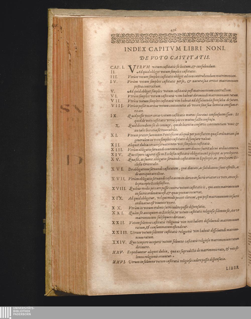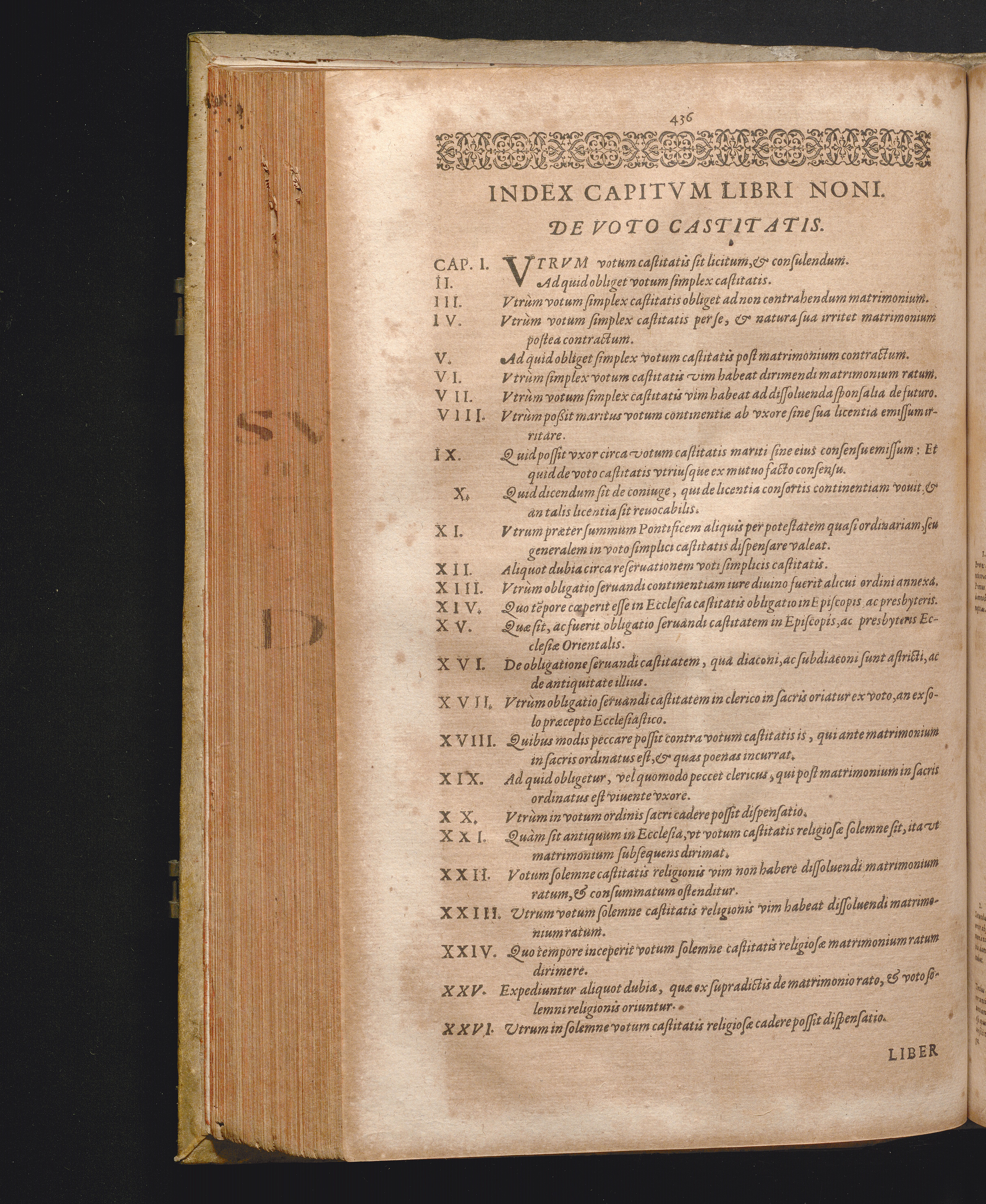 Index Capitvm Libri Noni. De Voto Castitatis.