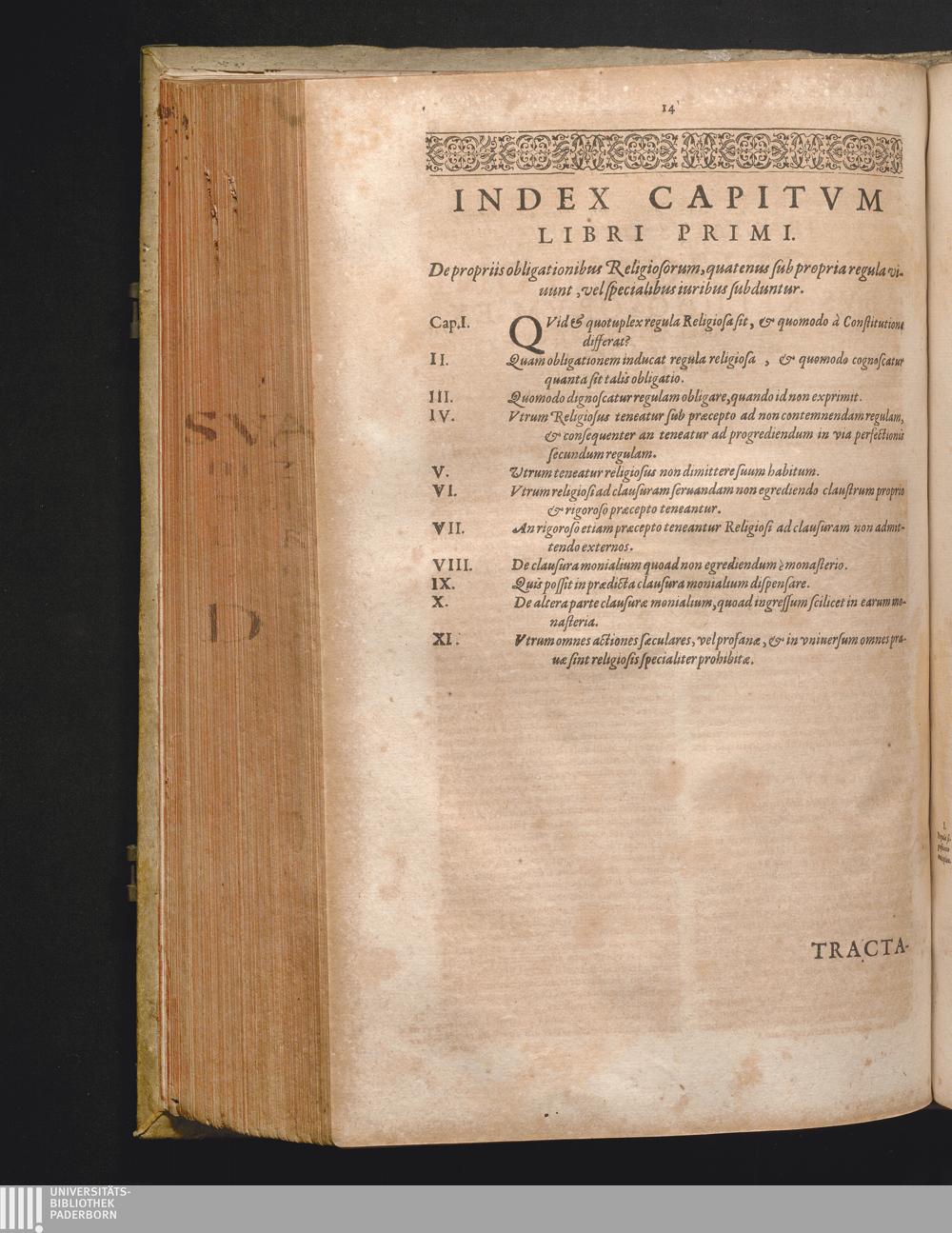 Index Capitvm Libri Primi. De propriis obligationius Religiosorum, quatenus sub propria[...]