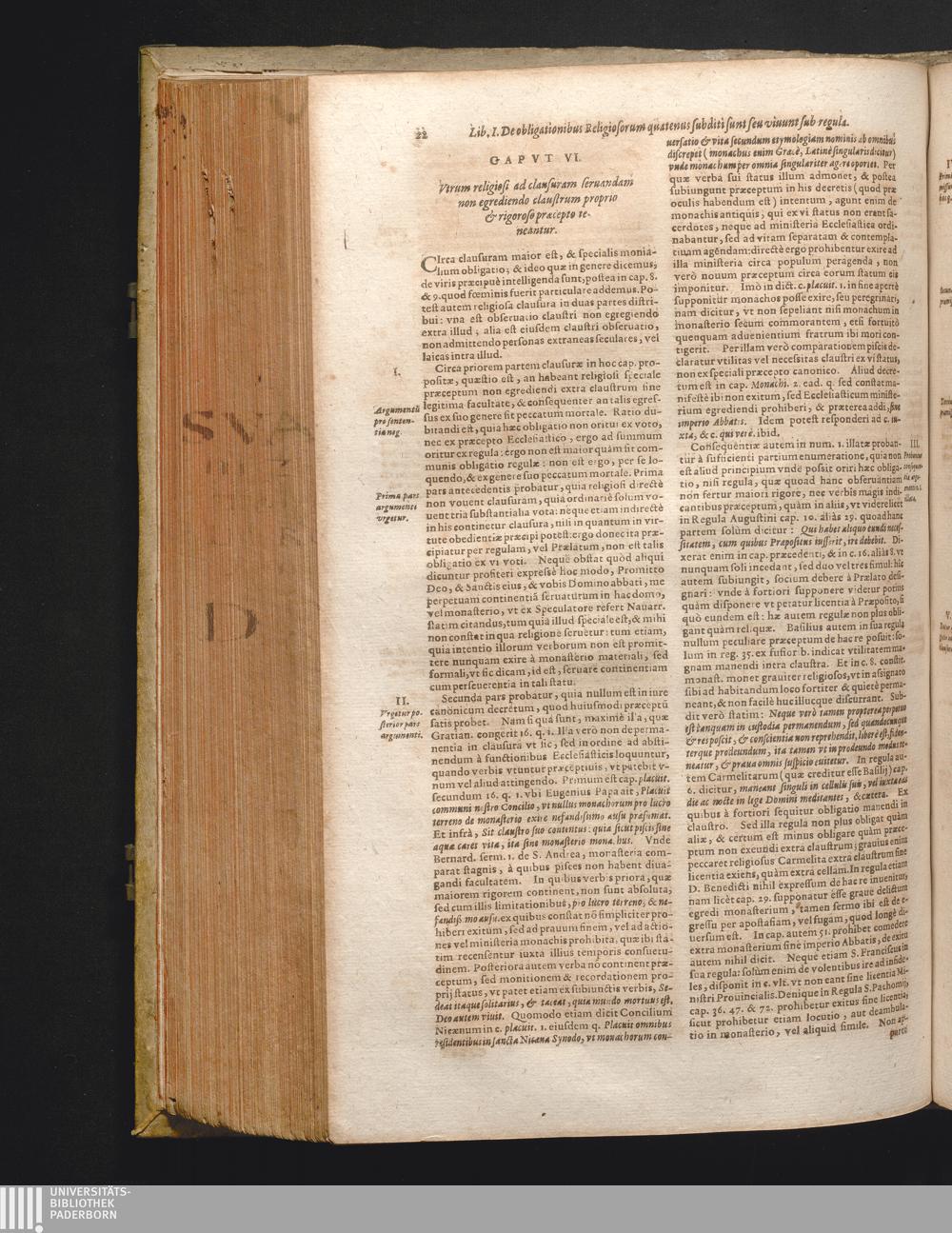 VI. Vtrum religiosi ad clausuram seruandam non egrediendo claustrum proprio & rigoroso[...]