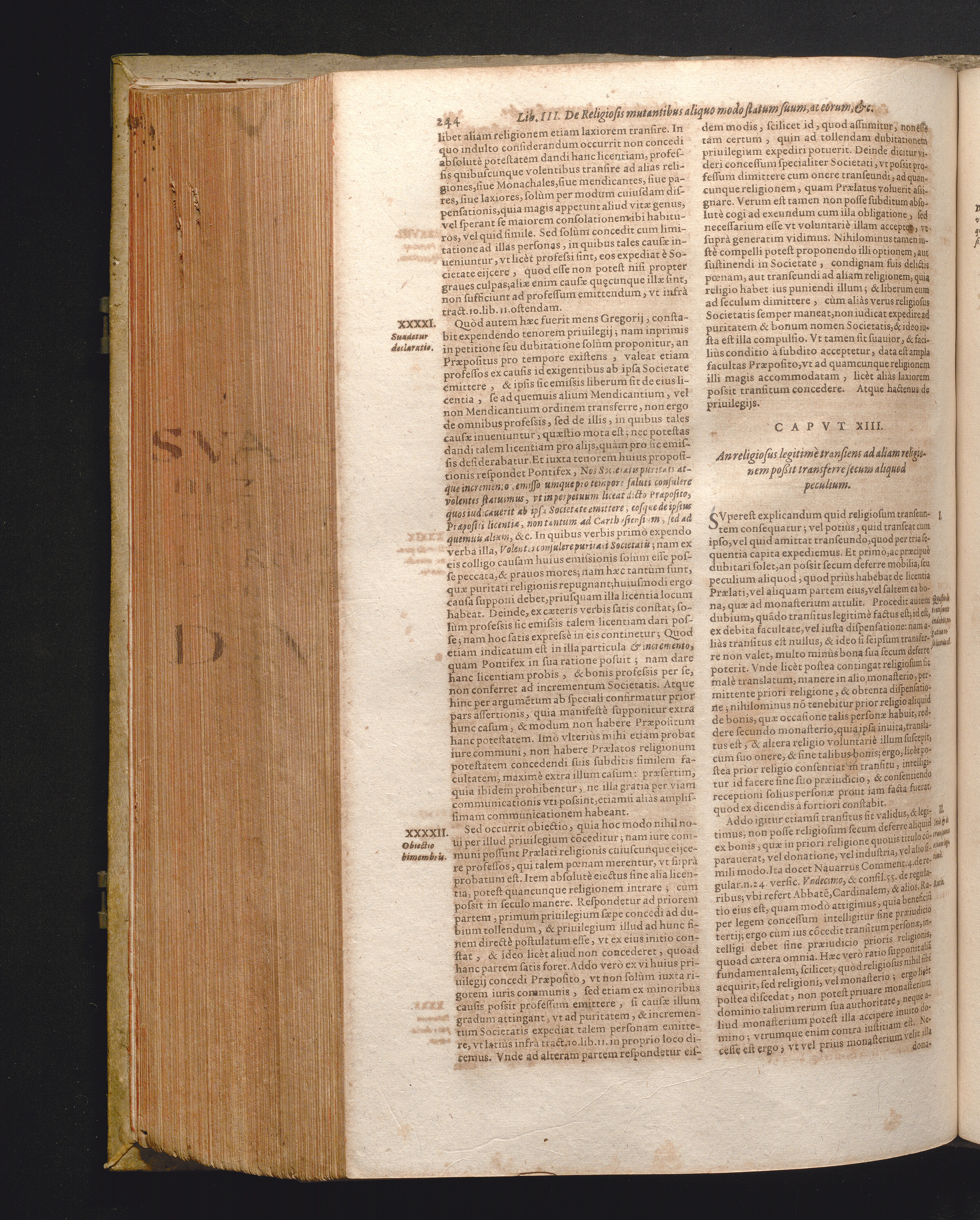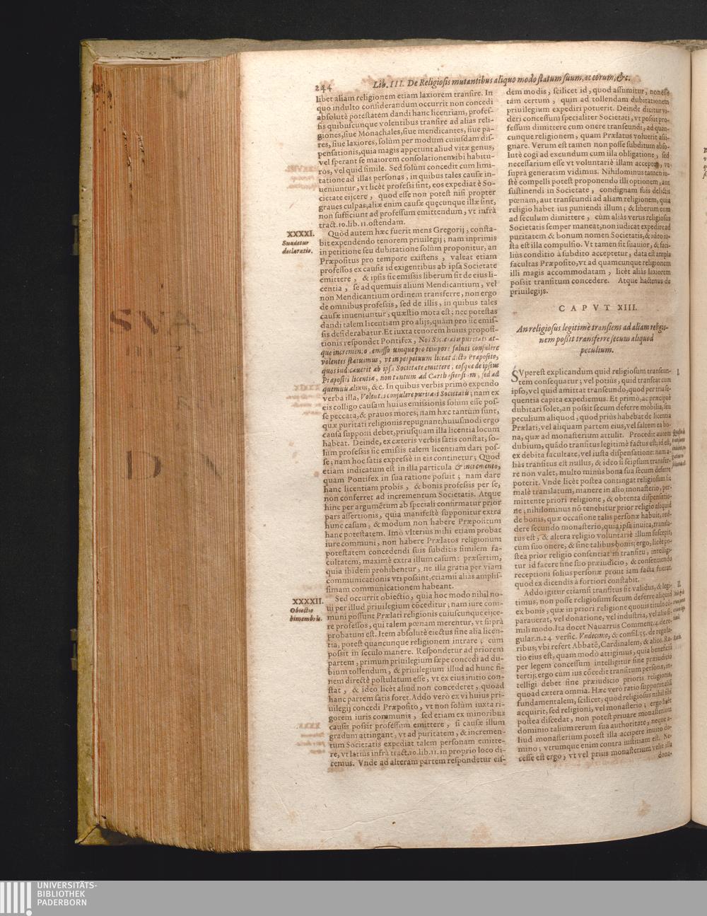 XIII. An Religiosus legitime transiens ad aliam Religionem, poßit secum transferre[...]