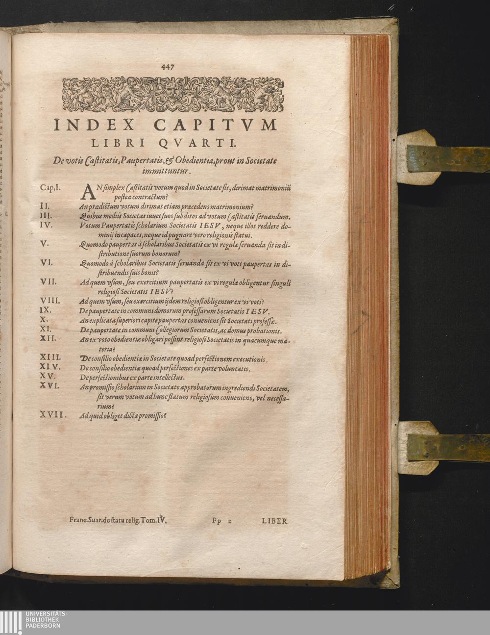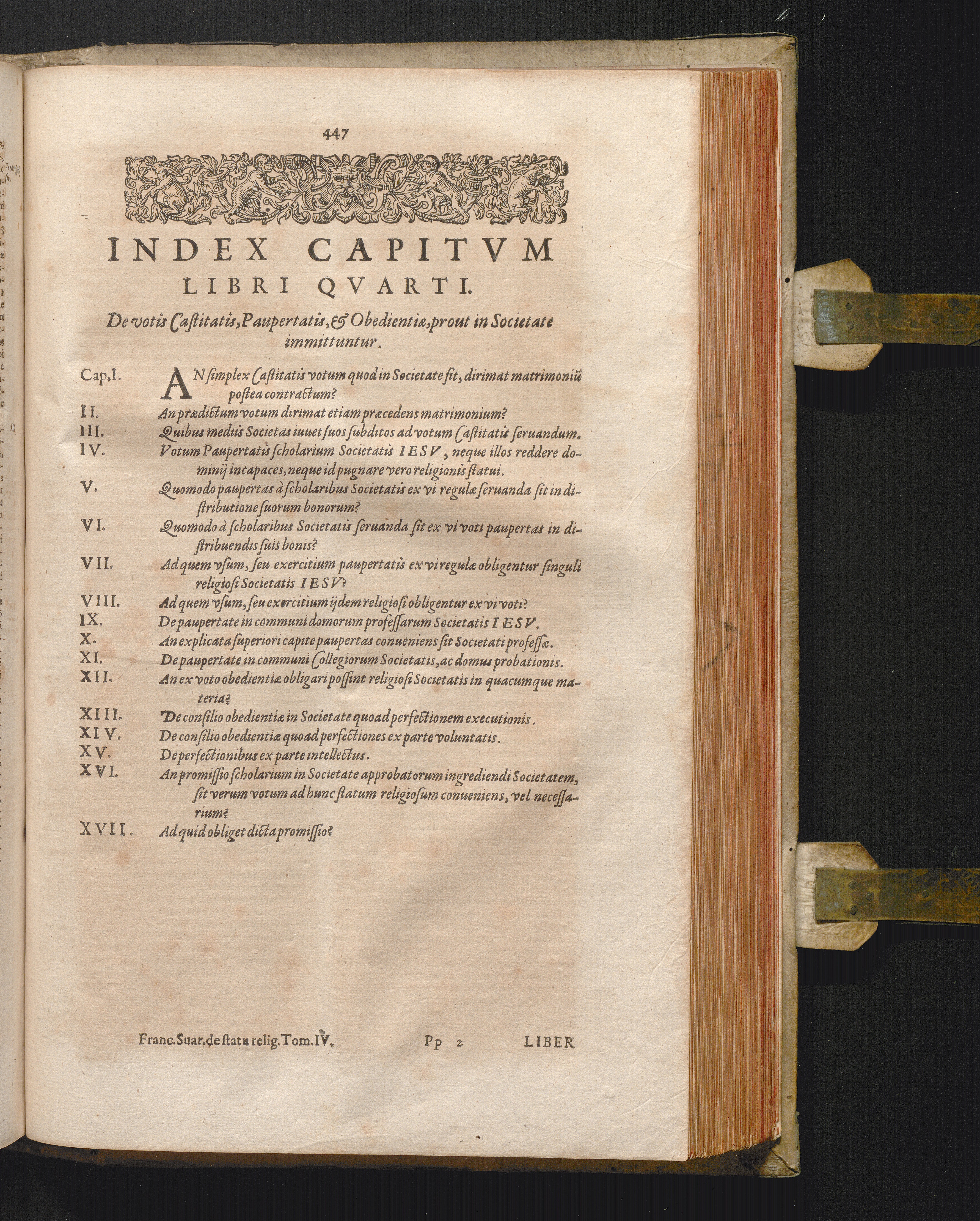 Index Capitvm Libri Qvarti. De votis Castitatis, Paupertatis, & Obedientia, prout[...]