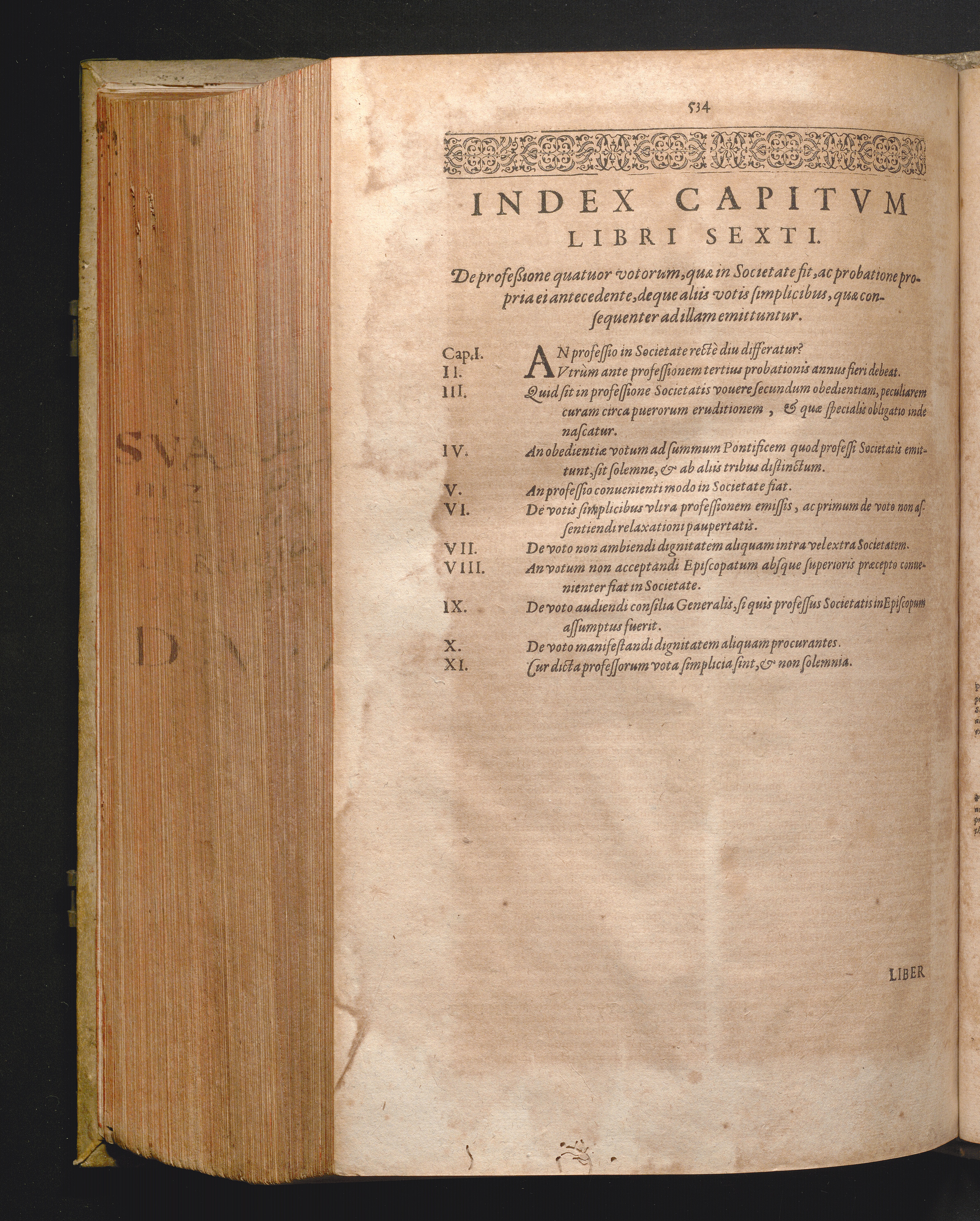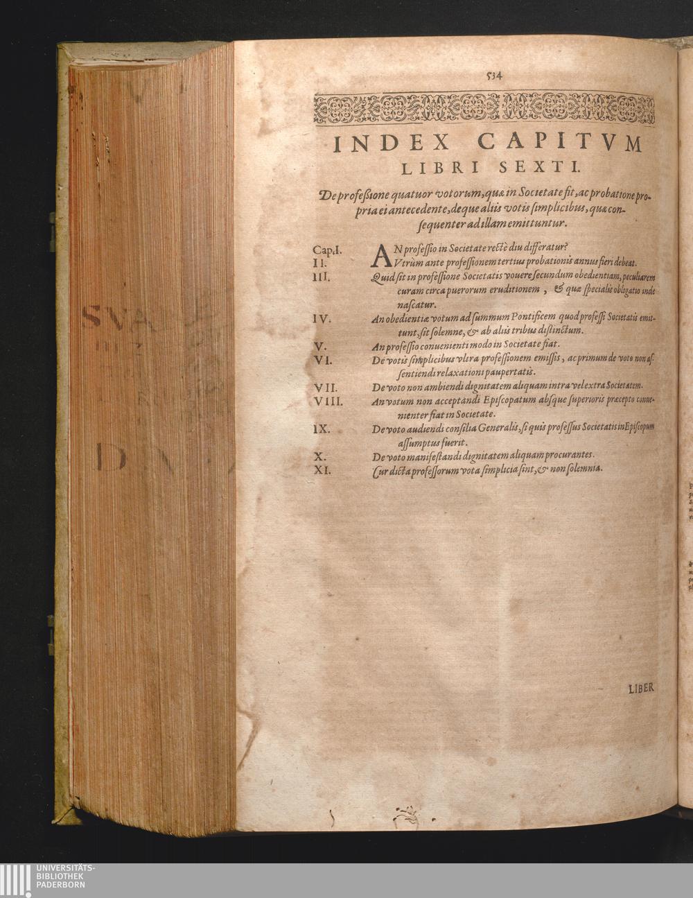 Index Capitvm Libri Sexti. De profeßione quatuor votorum, quæ in Societate sit, ac[...]
