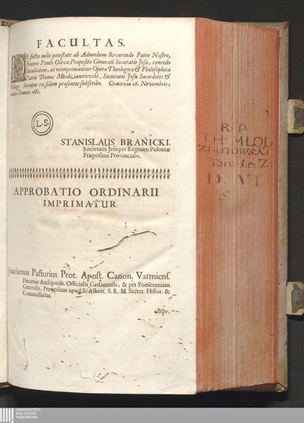 R.P. Thomæ Młodzianowski, Poloni, Societatis Jesu, Prælectionum Theologicarum Tomus[...]