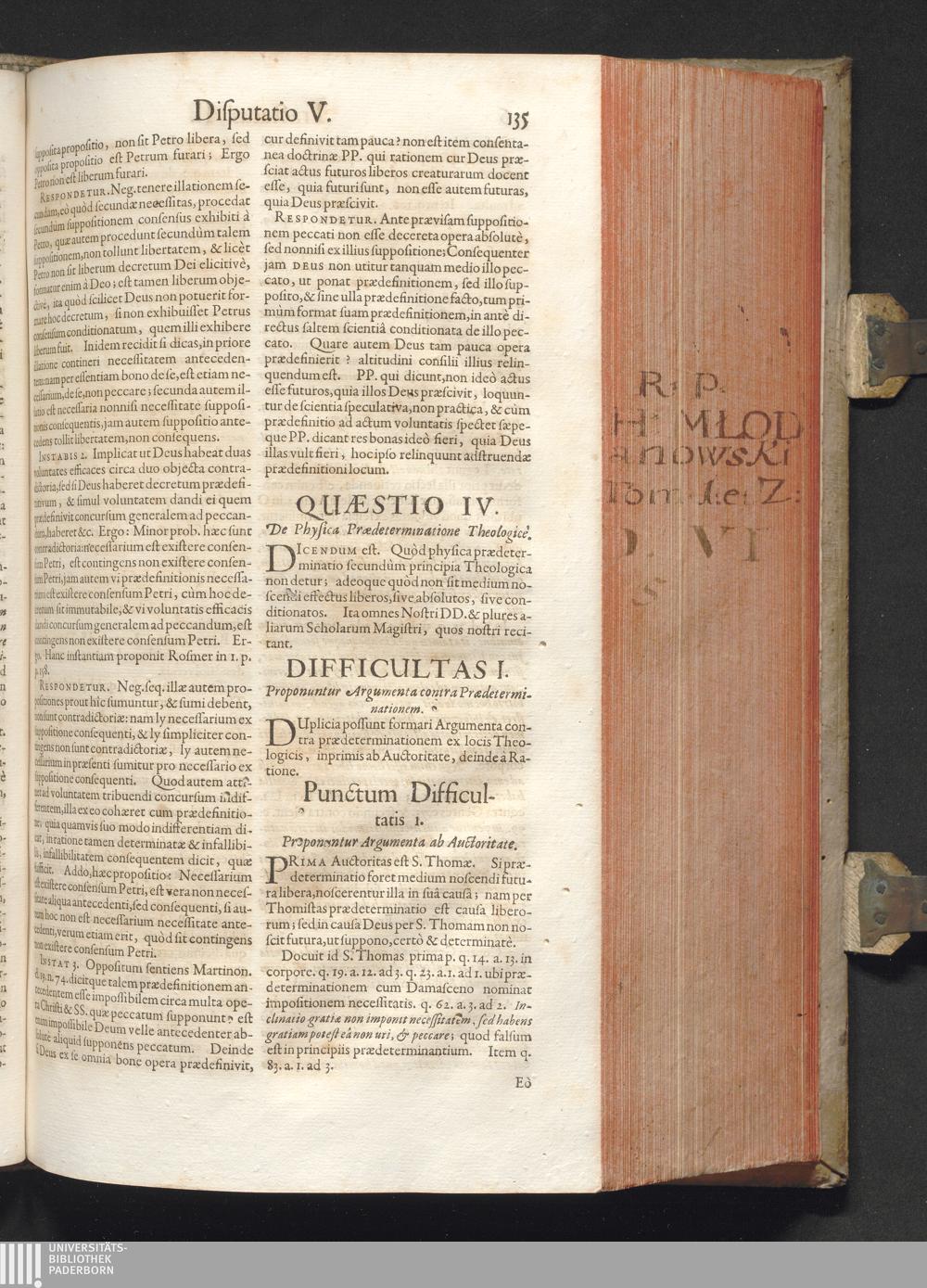 Quæstio IV. De Physica prædeterminatione Theologicè.