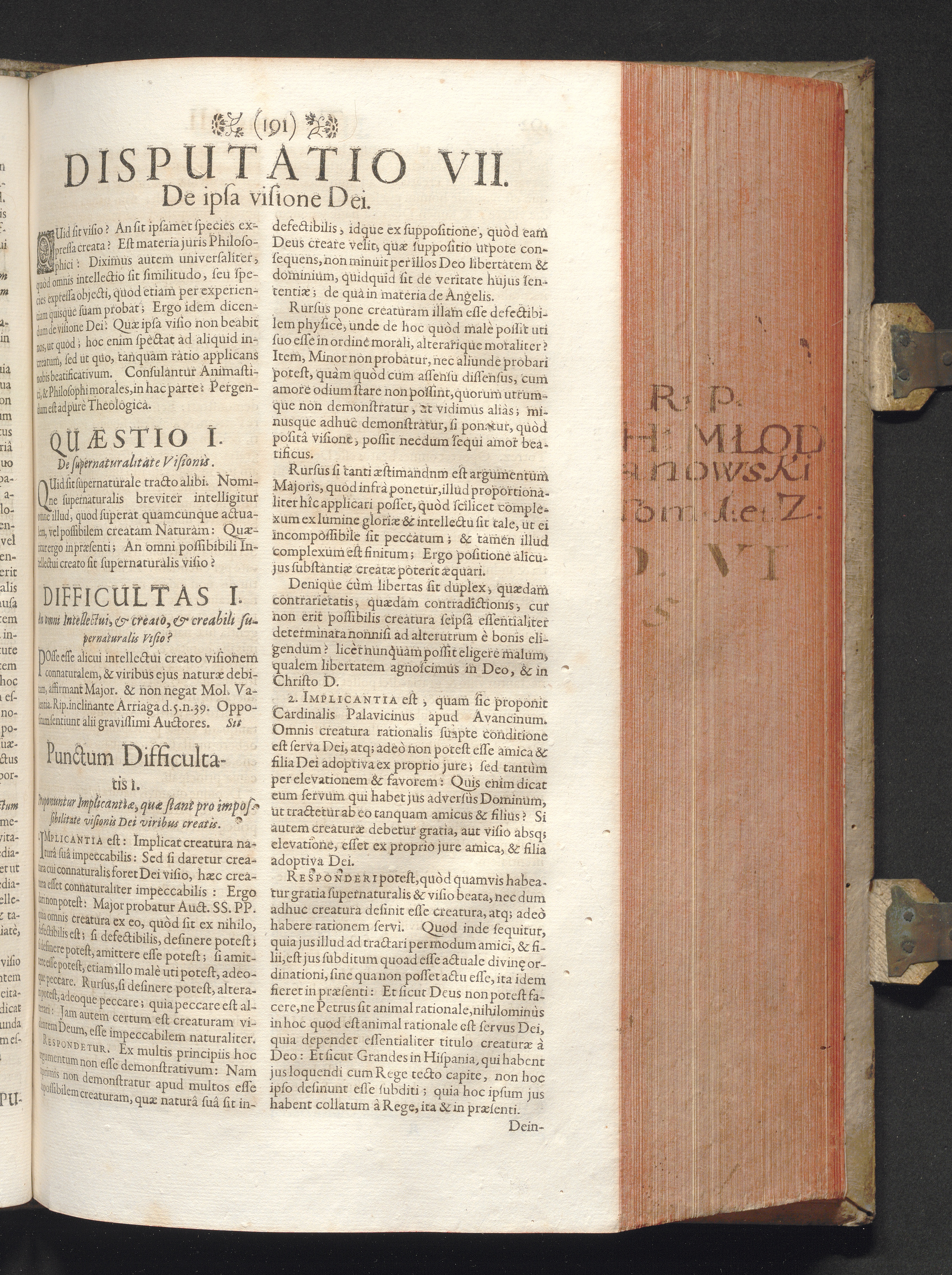 Punctum Diff. 1. Proponuntur Implicantiæ, quæ stant pro impossibilitate Visionis[...]