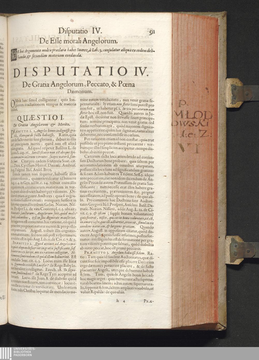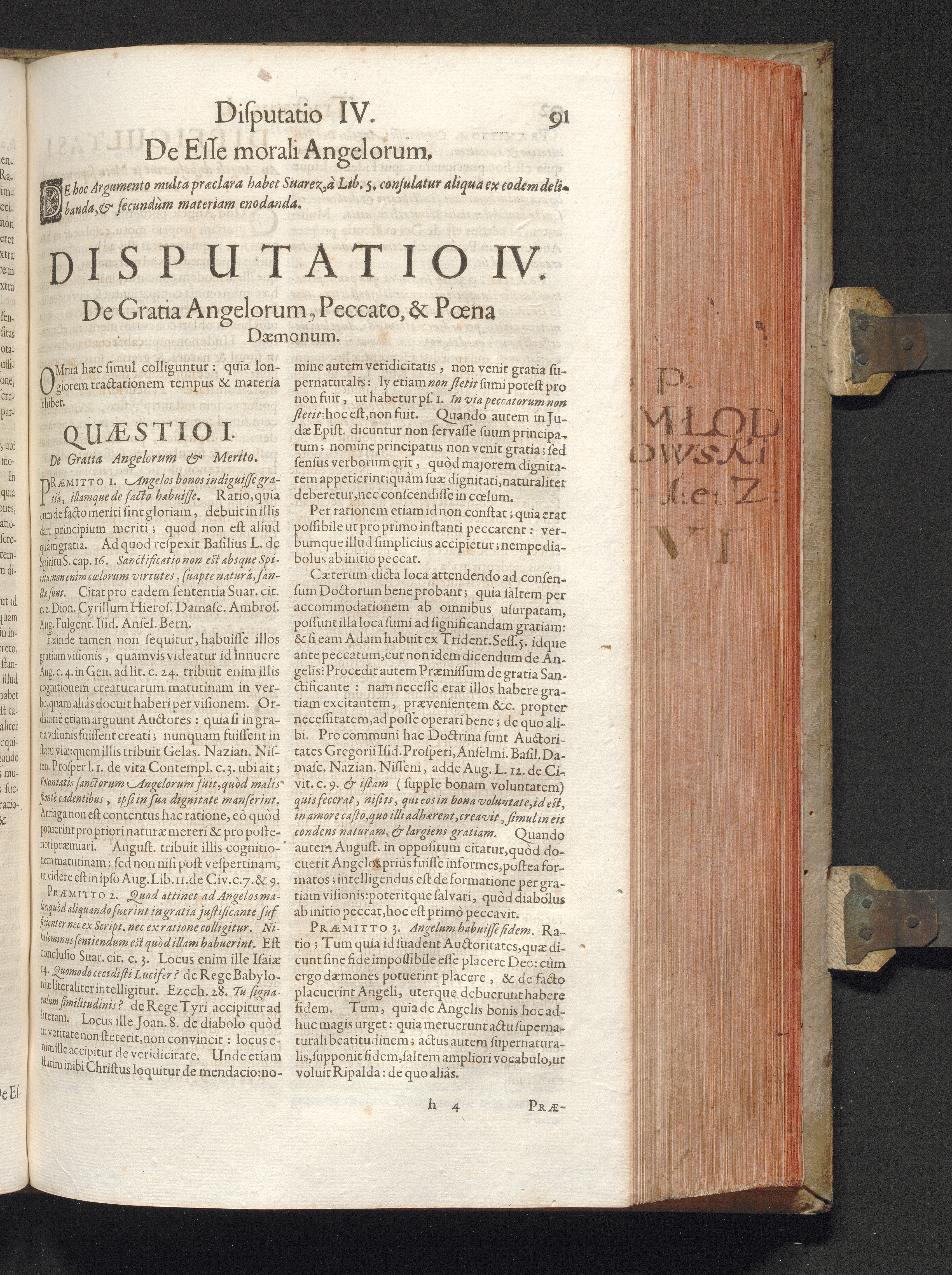 Disputatio IV. De Gratia Angelorum, Peccato, & Pœna Dæmonum.