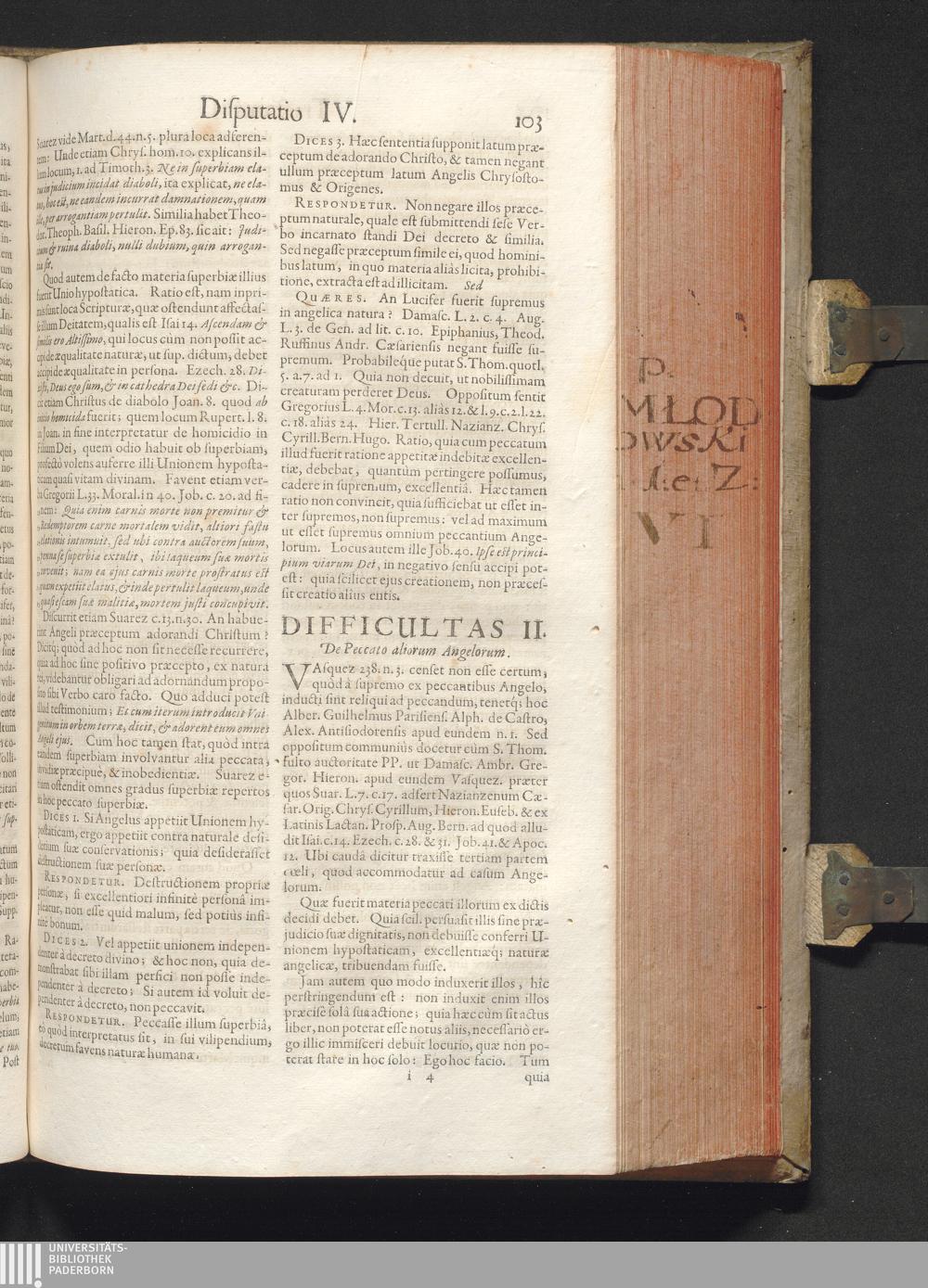 Disputatio IV. De Gratia Angelorum, Peccato, & Pœna Dæmonum.