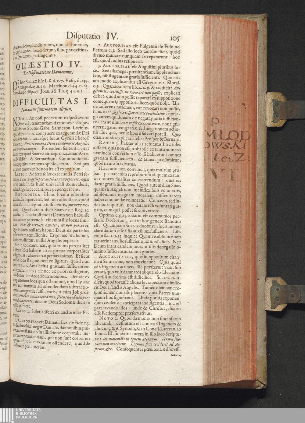 Disputatio IV. De Gratia Angelorum, Peccato, & Pœna Dæmonum.