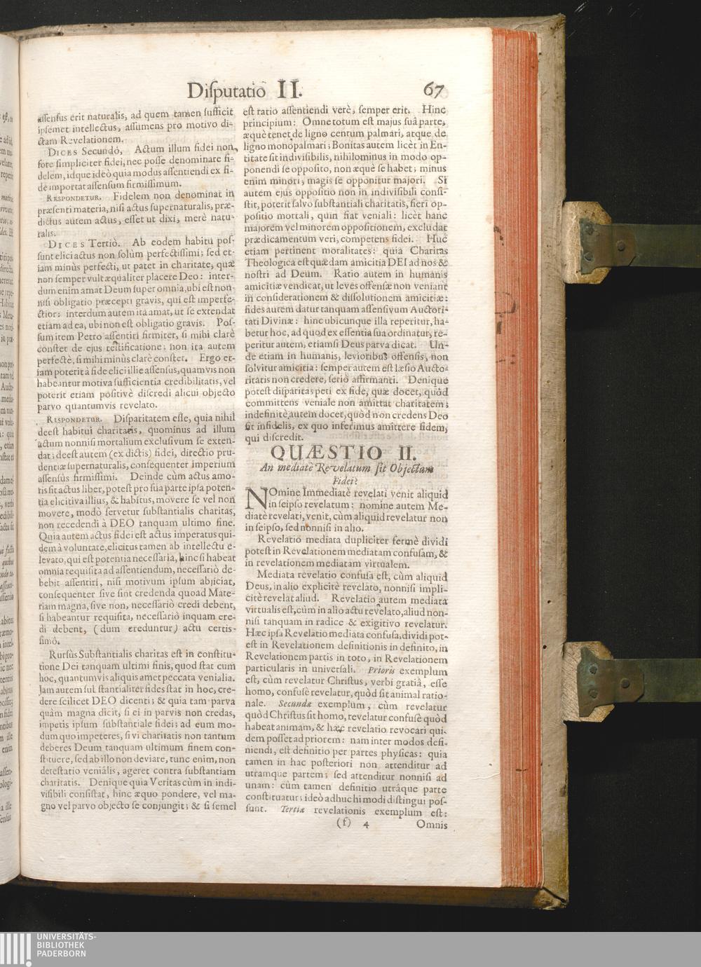 Disputatio II. De Objectis Fidei in particulari.