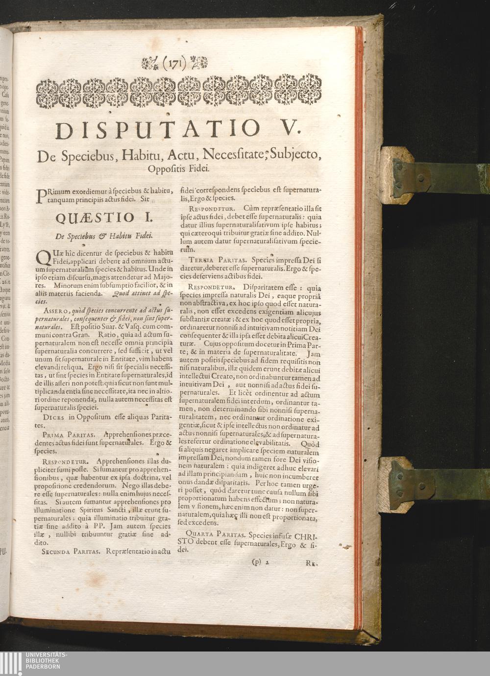 Disputatio V. De speciebus, habitu, actu, necessitate, subjecto, oppositis Fidei[...]