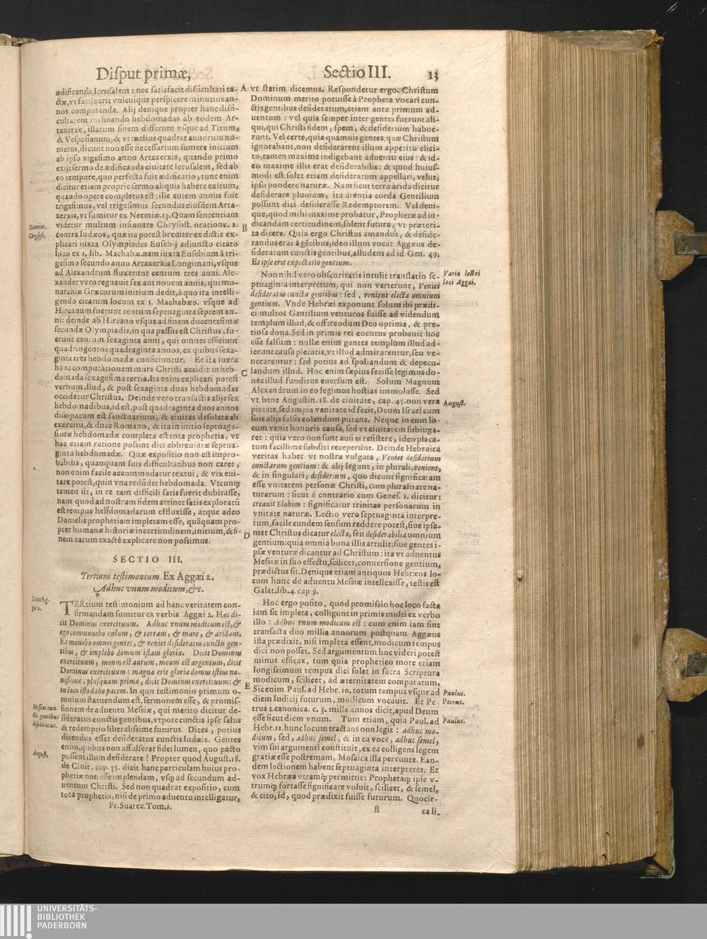 Sectio tertia. Tertium testimonium ex Aggæi 2. Adhuc vnum modicum, &c.