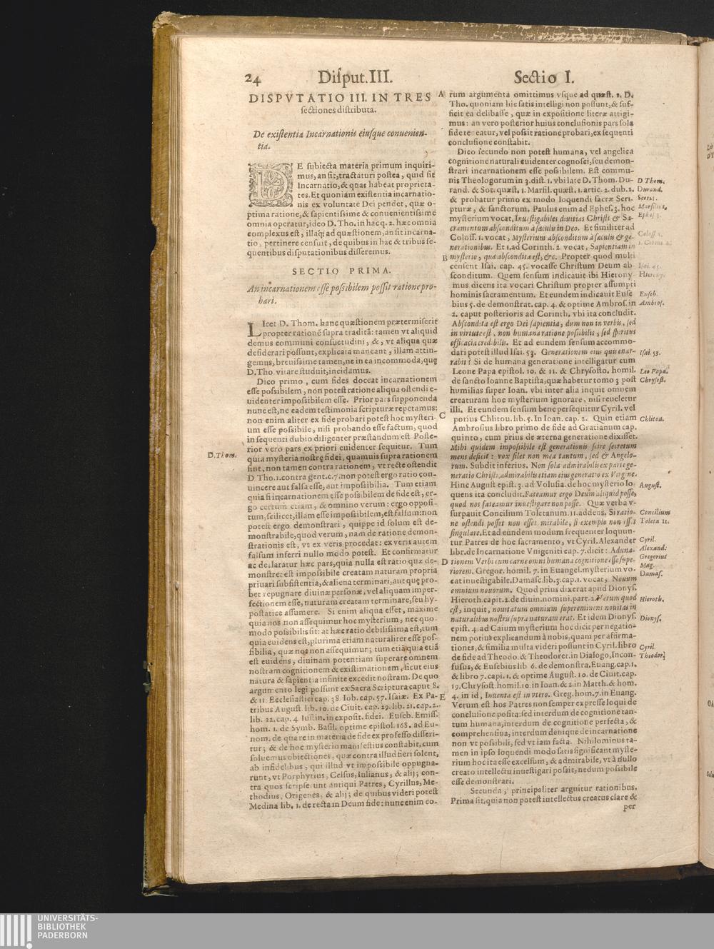 Sectio prima. Vtrum Incarnationem esse poßibilem, poßit ratione probari.