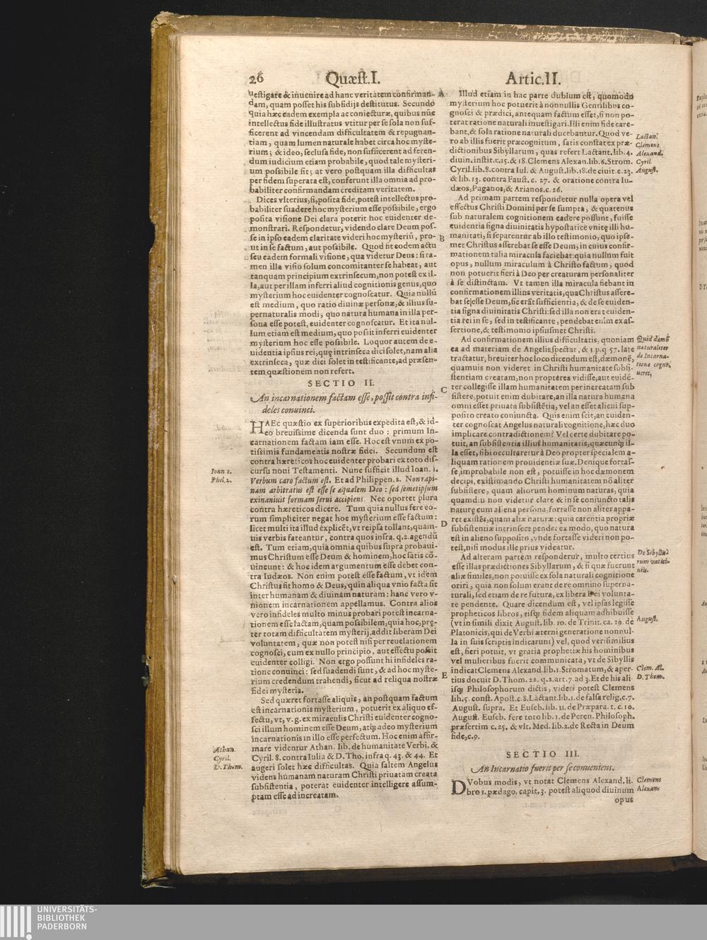 1. Priorum vigintisex Quaestionum eius Partis expositionem complectens