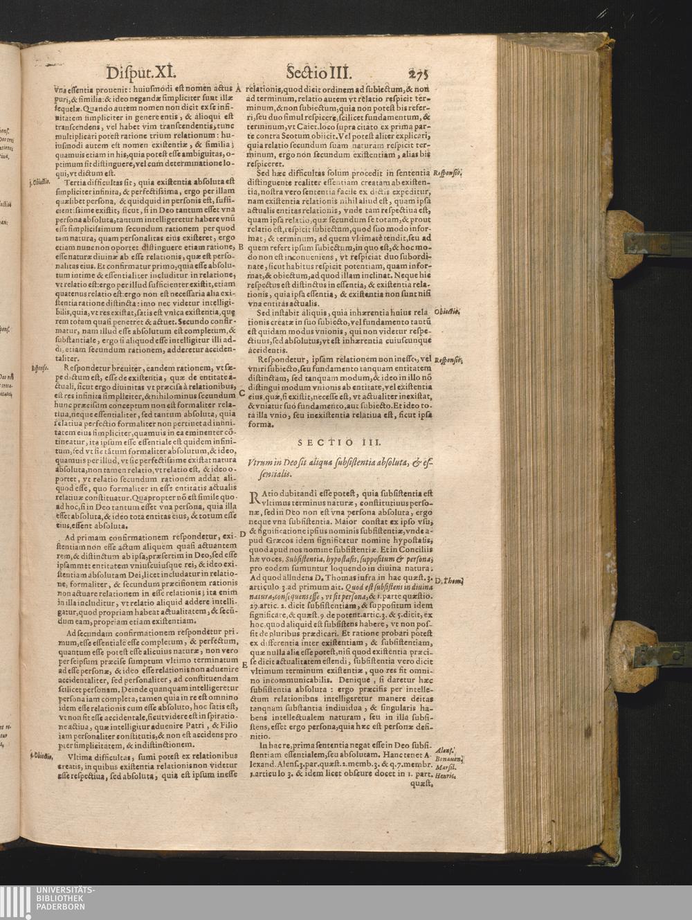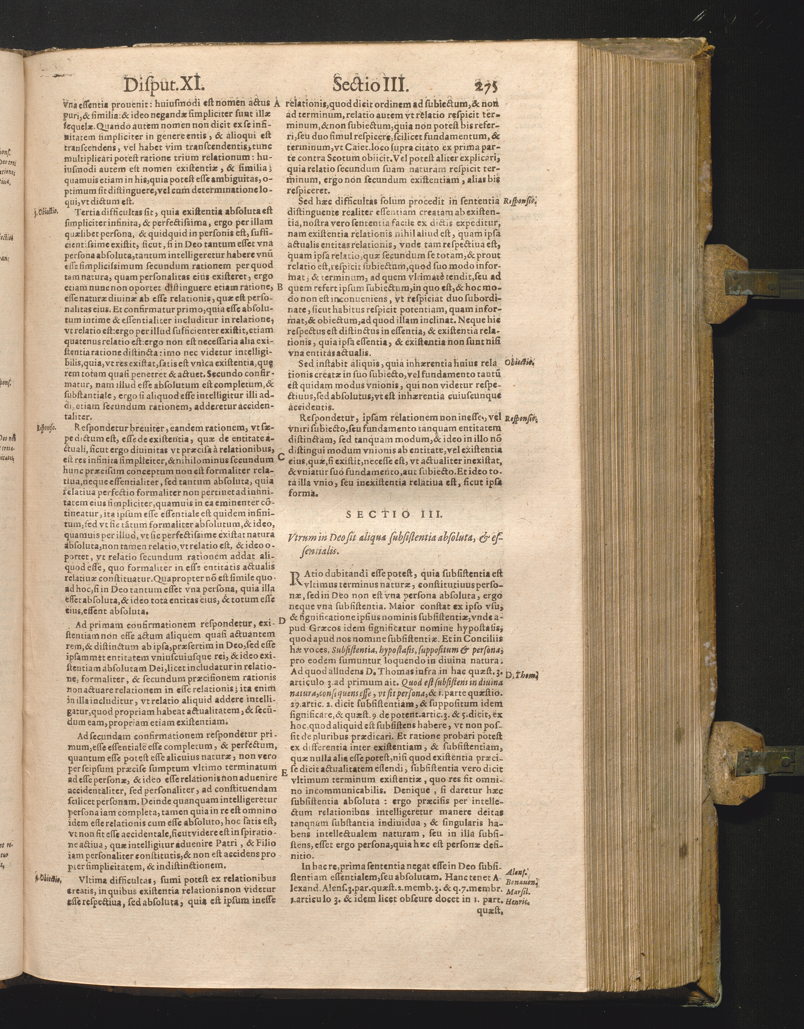 Sectio tertia. Vtrum in Deo sit aliqua subsistentia absoluta, & essentialis.