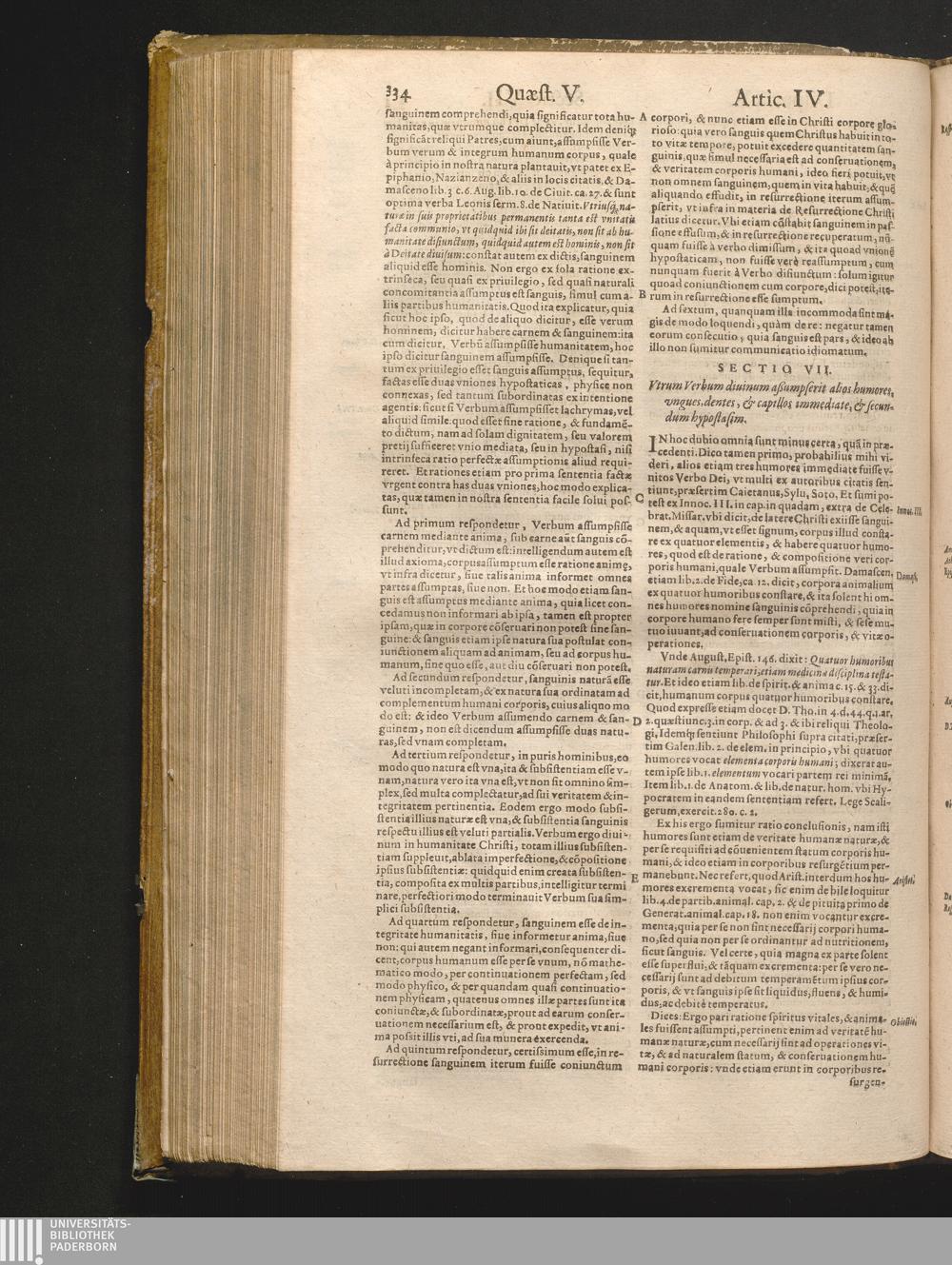 Sectio septima. Vtrum Verbum diuinum assumpserit alios humores, vngues, dentes, &[...]
