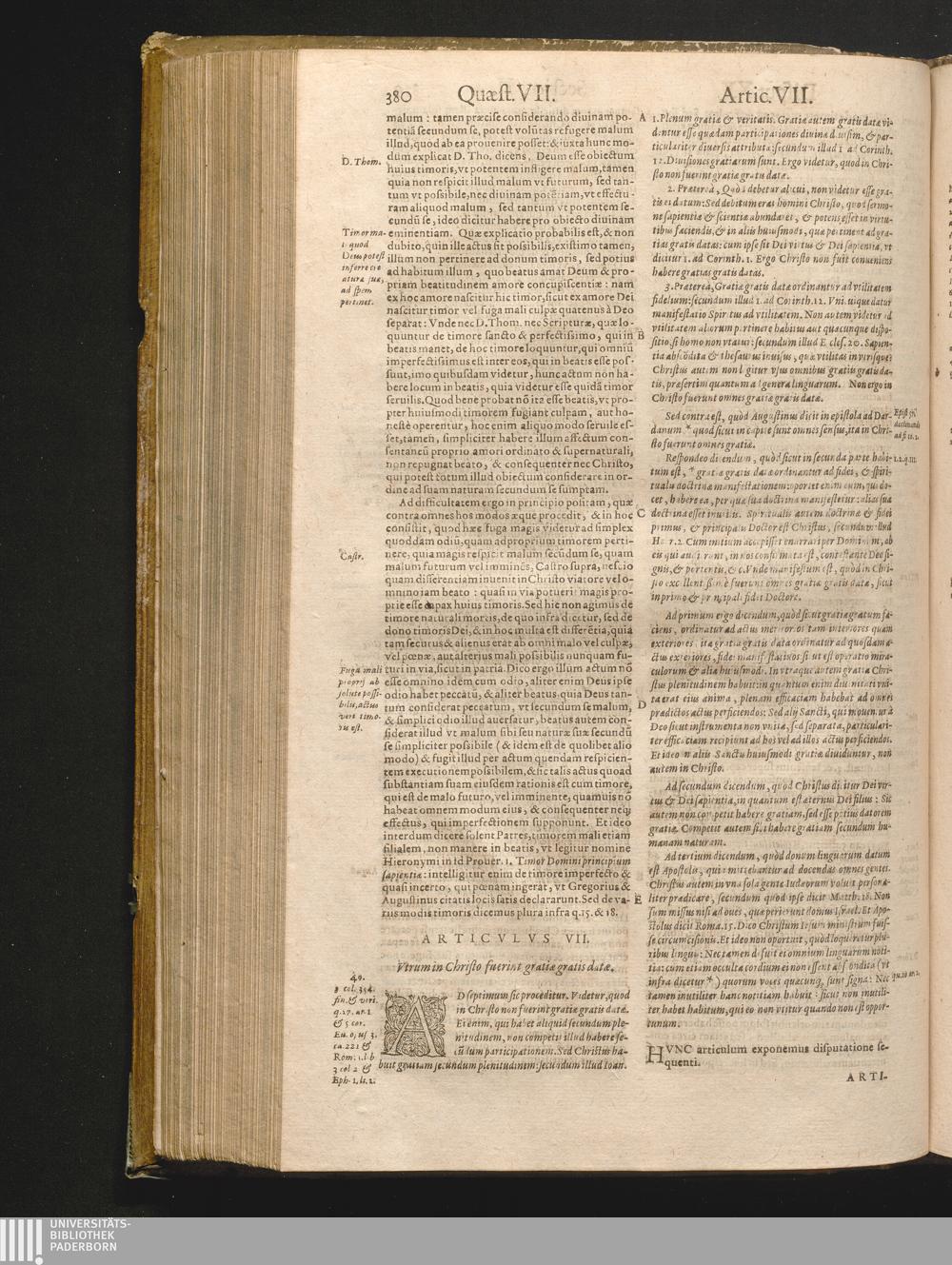 Qvæstio VII. De Gratia Christi, prout quidam singularis est homo, in tredecim articulos[...]