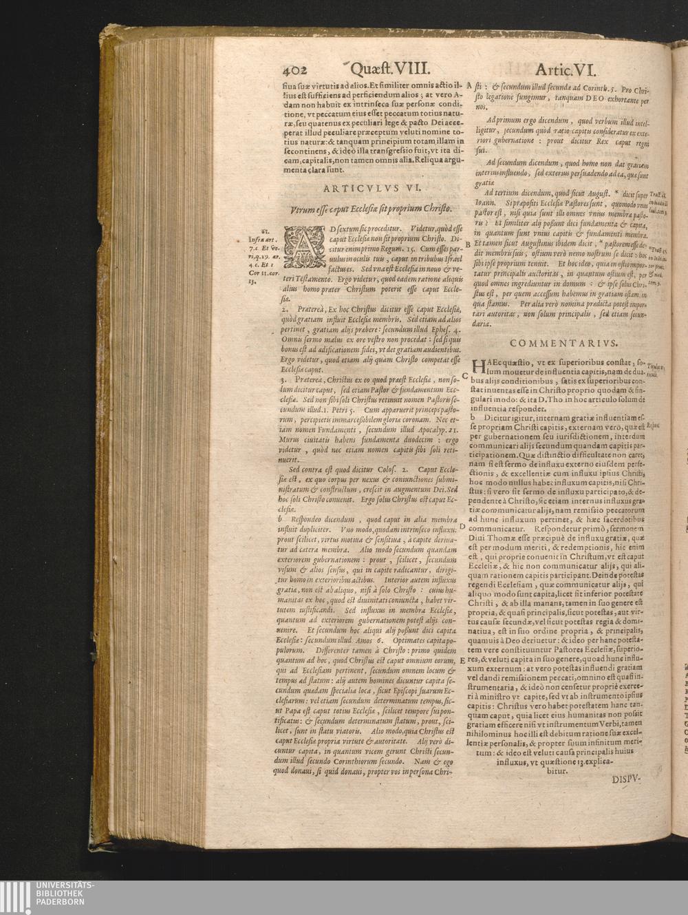 Qvæstio VIII. De gratia Christi, secundum quod est caput Ecclesiæ, in octo articulos[...]