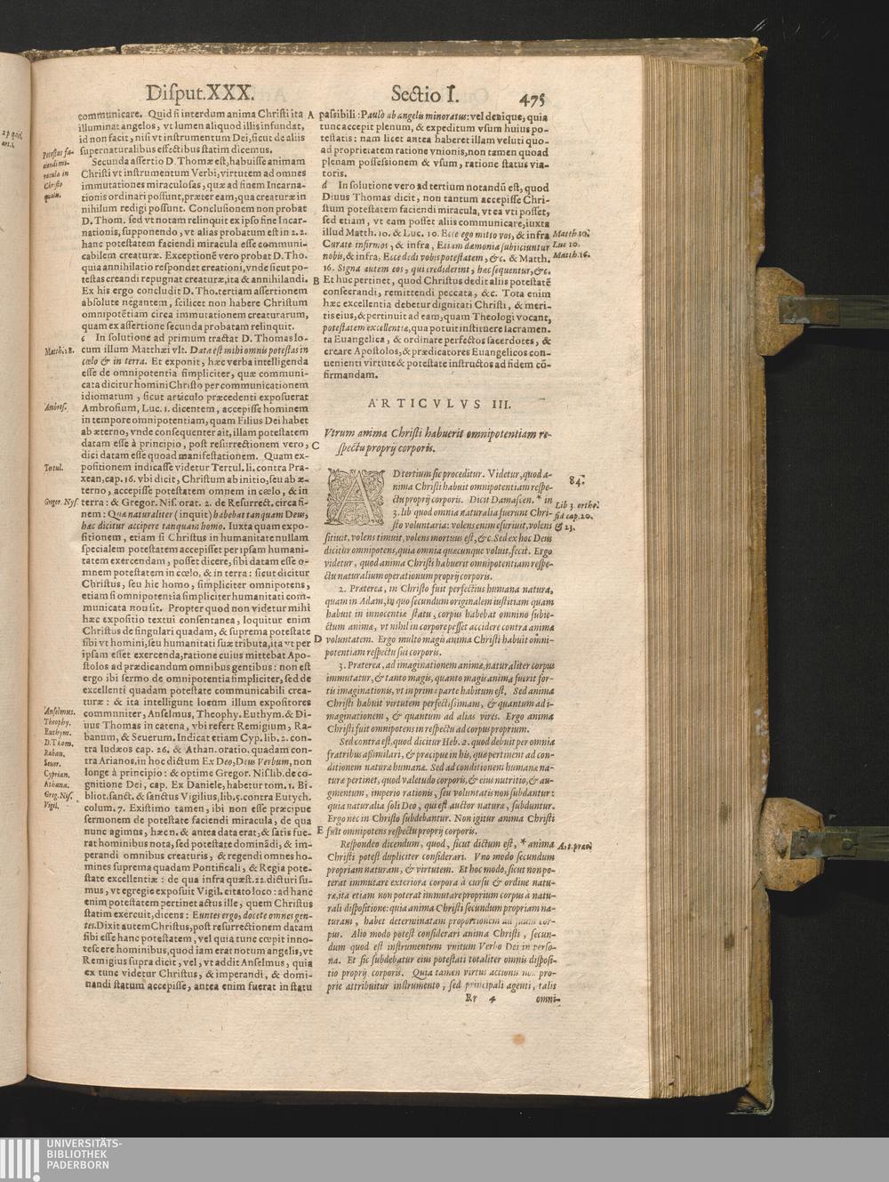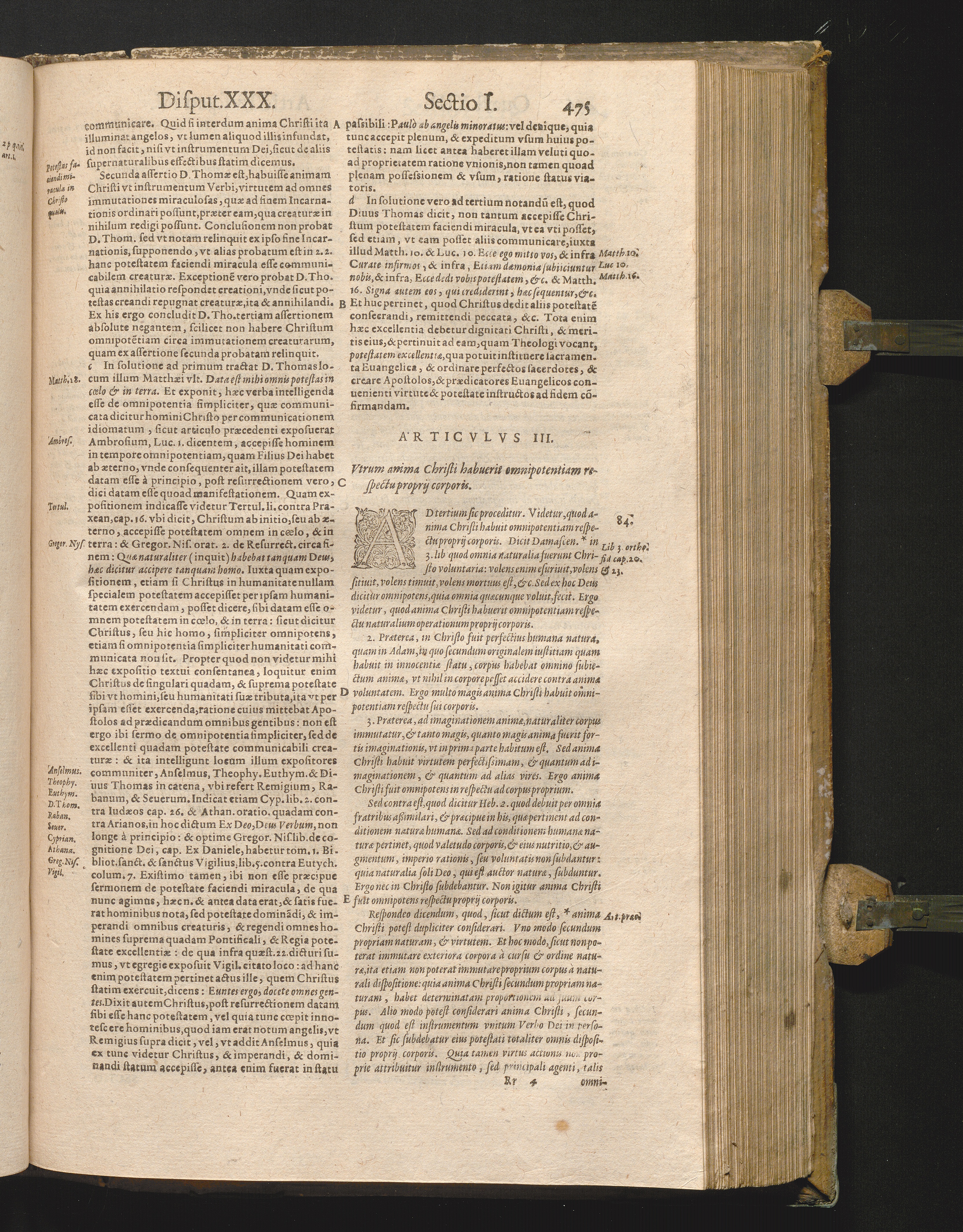 Articulus III. vtrum anima Christi habuerit omnipote[n]tiam respectu proprii cor[...]