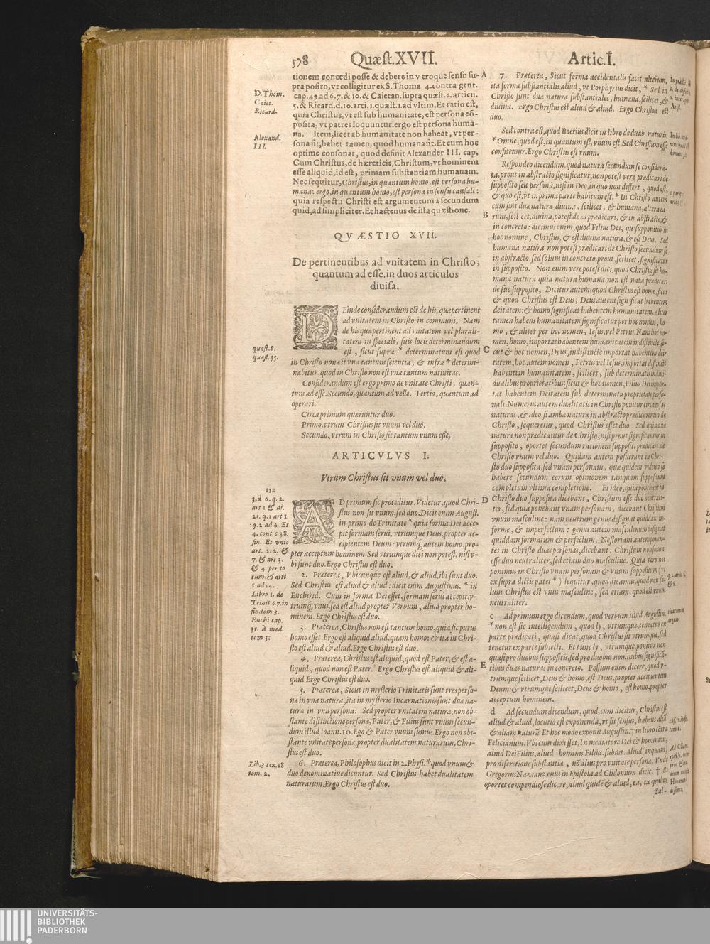 Qvæstio XVII. De pertinentibus ad vnitatem in Christo quantum ad esse in duos articulos[...]