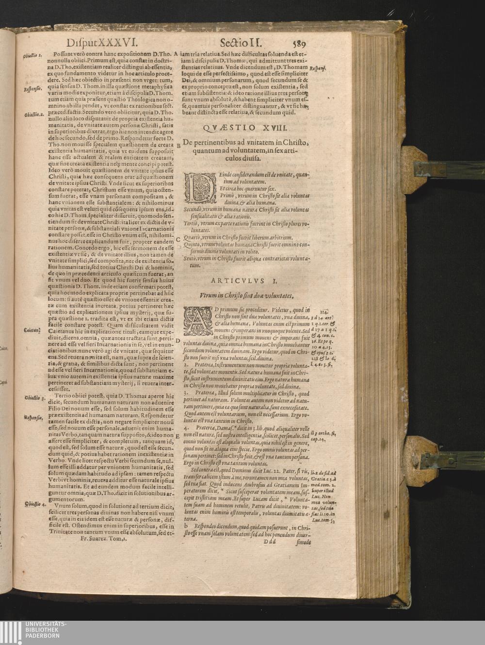 Qvæstio XVIII. De pertinentibus ad vnitatem in Christo quantum ad voluntatem in sex[...]