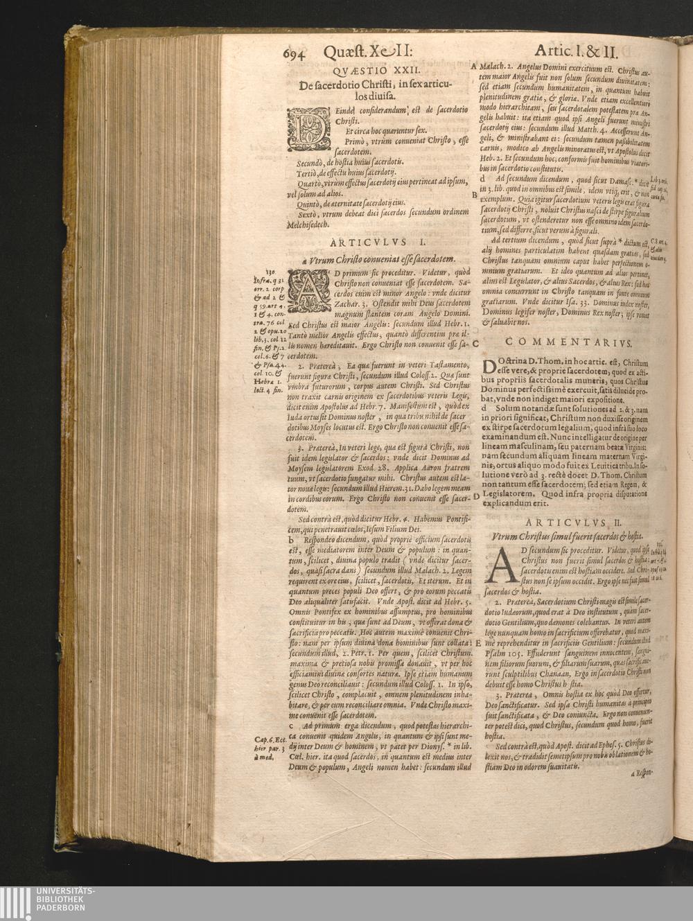 Qvæstio XXII. De sacerdotio Christi, in sex articulos diuisa.