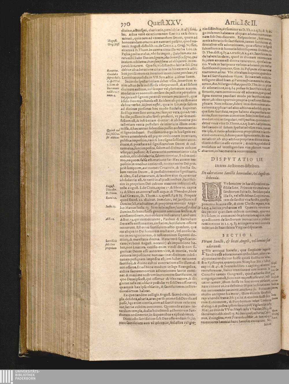 Dispvtatio LII. De adoratione sanctis hominibus vel Angelis exhibenda.