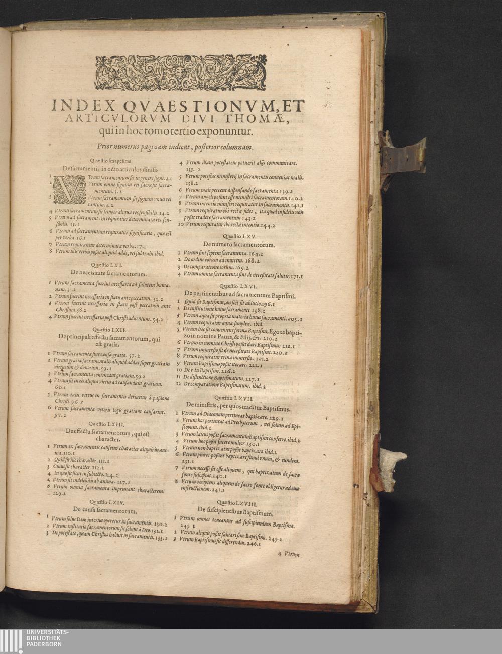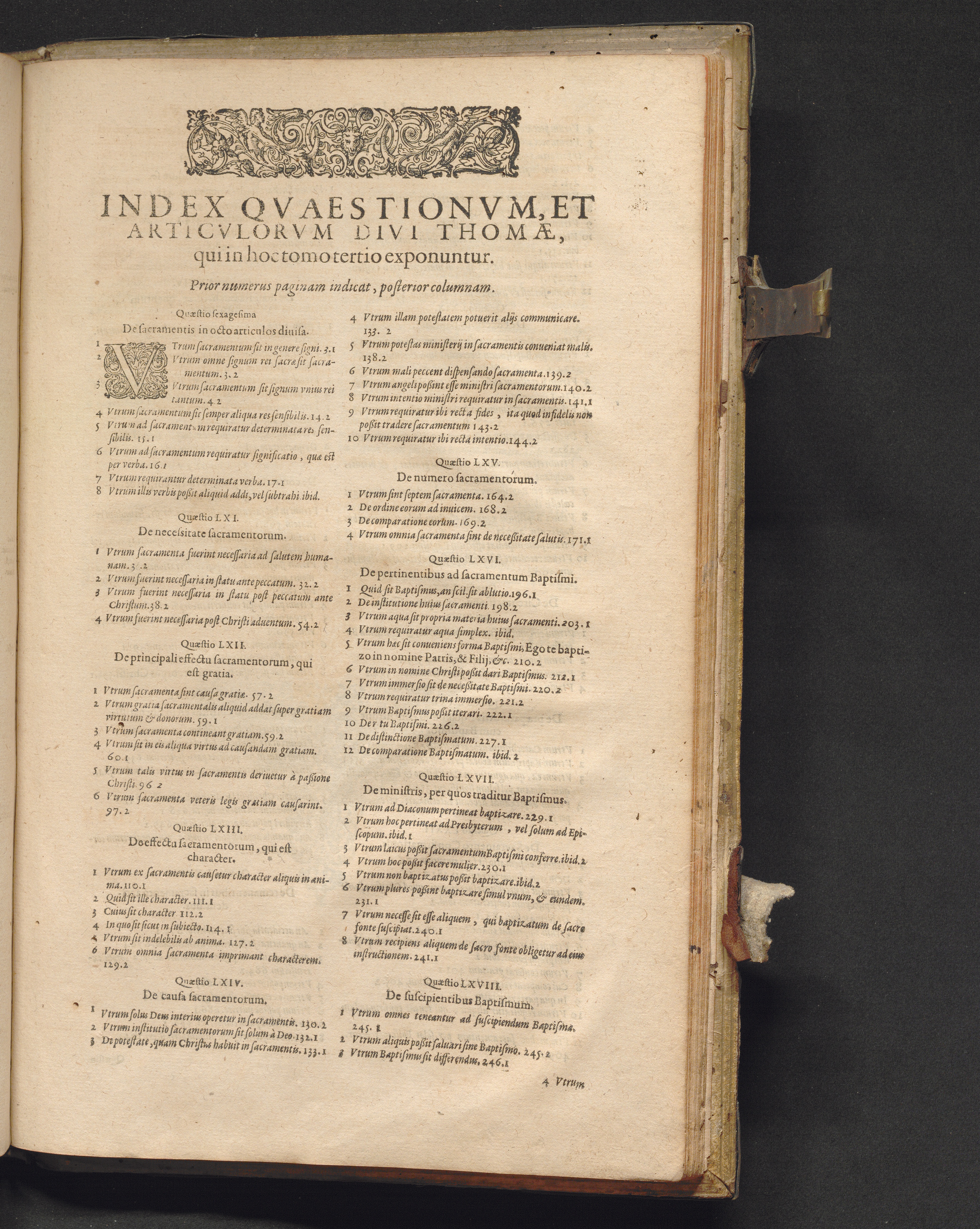 Index Quæstionum, Et Articvlorvm Divi Thomæ, qui in hoc Tomo tertio exponuntur.