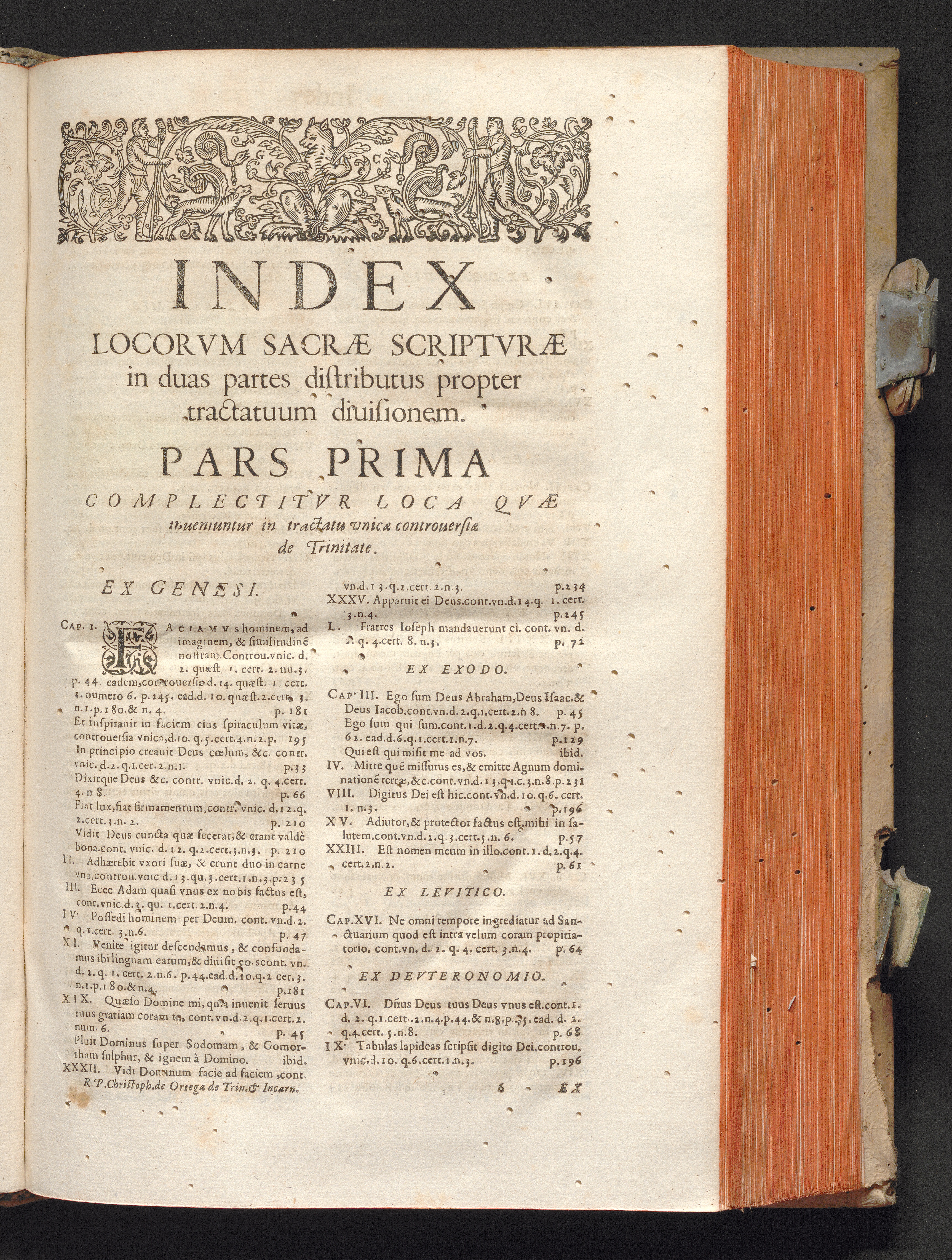 R. P. Christophori de Ortega Sanclementini, E' Societate Iesv. Qvondam in Provincia Toletana Theologiæ Scholasticæ publici Professoris ... Tractatvs Dvo, De Trinitate, Nec non, Incarnatione : Controuersiarum Dogmaticarum & Scholasticarum opus Sanctæ Inquisitionis Censoribus, & Scholasticis Theologis perutile. Iuncto quadruplici Indice