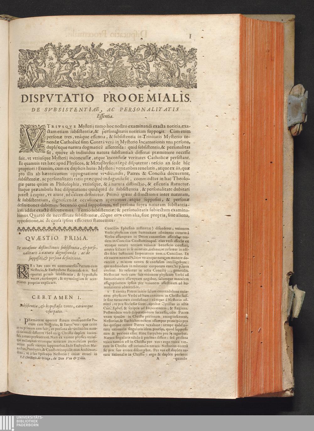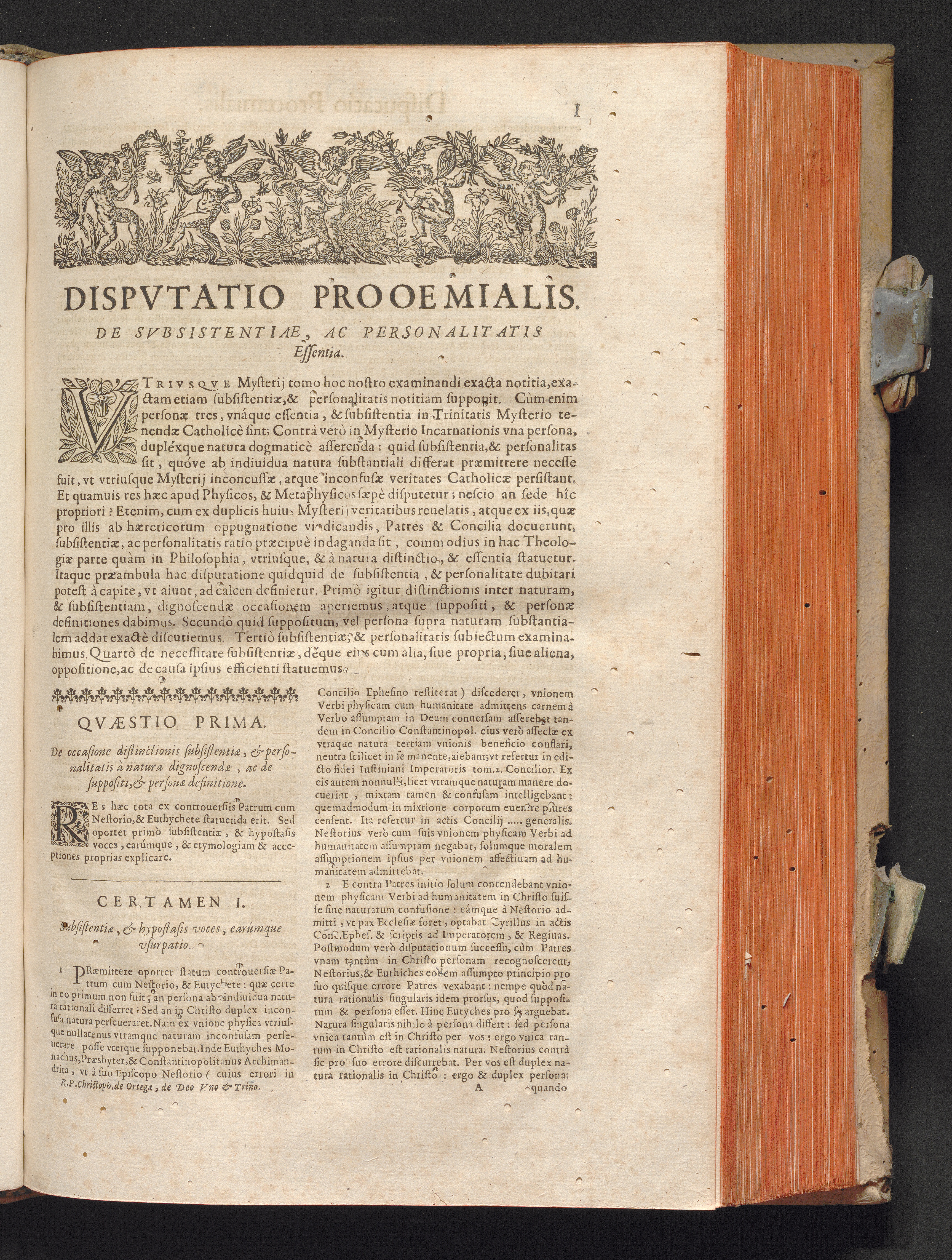 R. P. Christophori de Ortega Sanclementini, E' Societate Iesv. Qvondam in Provincia Toletana Theologiæ Scholasticæ publici Professoris ... Tractatvs Dvo, De Trinitate, Nec non, Incarnatione : Controuersiarum Dogmaticarum & Scholasticarum opus Sanctæ Inquisitionis Censoribus, & Scholasticis Theologis perutile. Iuncto quadruplici Indice