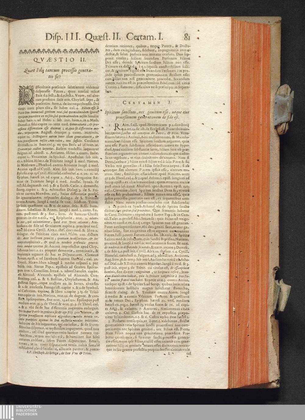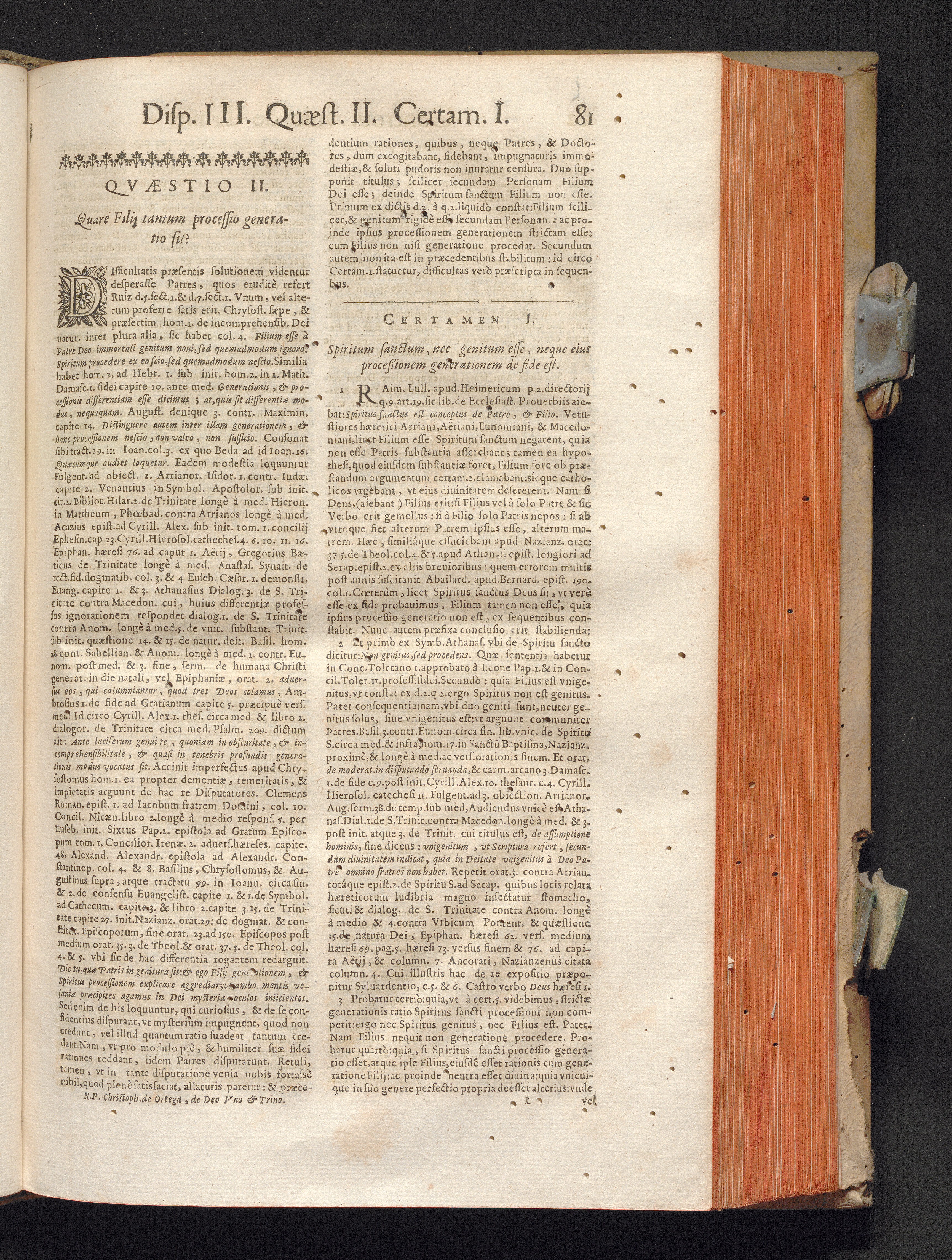R. P. Christophori de Ortega Sanclementini, E' Societate Iesv. Qvondam in Provincia Toletana Theologiæ Scholasticæ publici Professoris ... Tractatvs Dvo, De Trinitate, Nec non, Incarnatione : Controuersiarum Dogmaticarum & Scholasticarum opus Sanctæ Inquisitionis Censoribus, & Scholasticis Theologis perutile. Iuncto quadruplici Indice