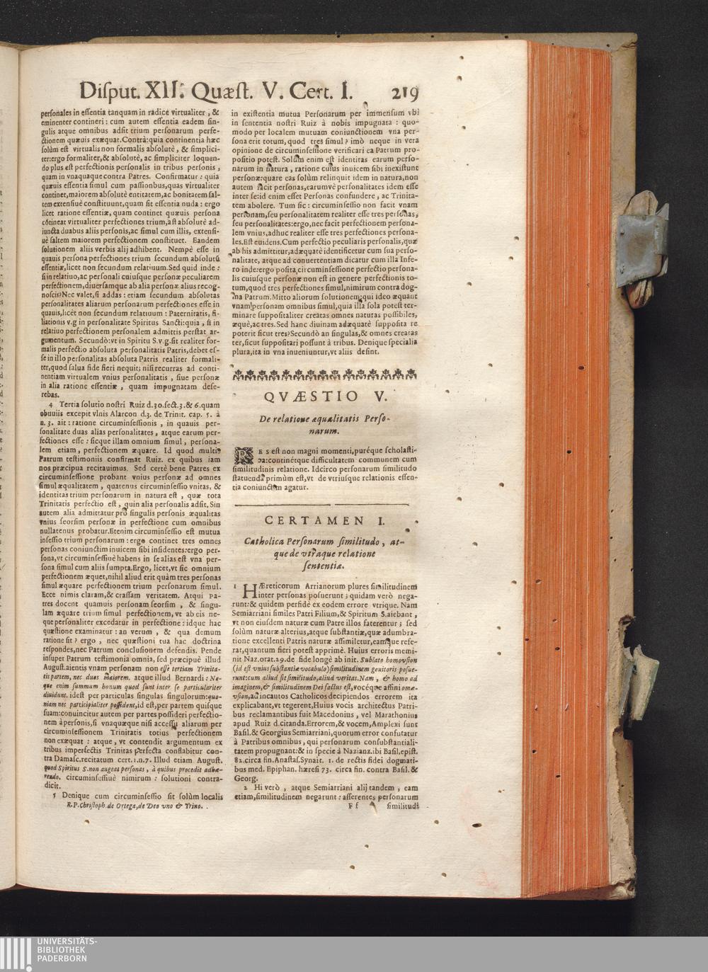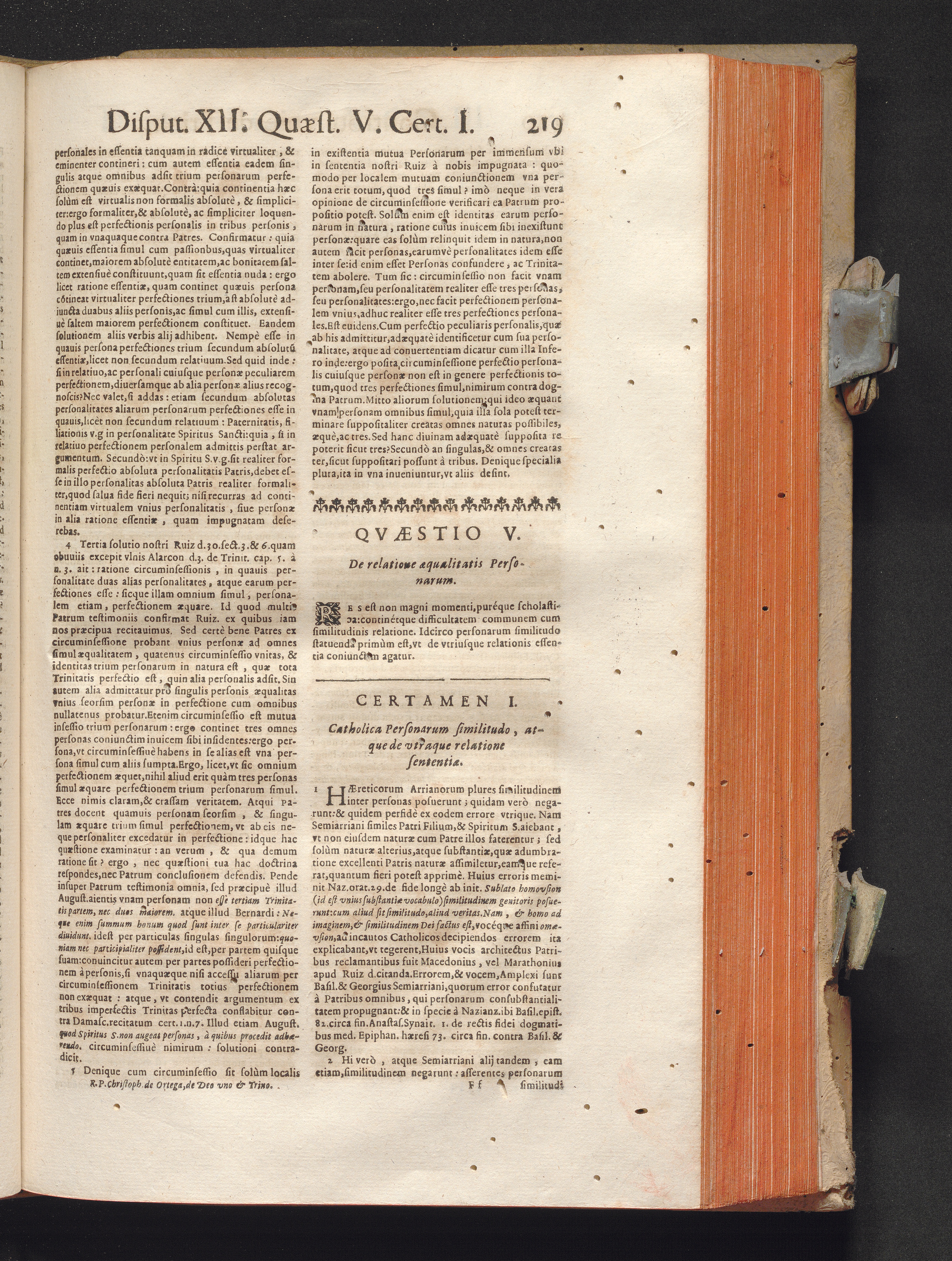 R. P. Christophori de Ortega Sanclementini, E' Societate Iesv. Qvondam in Provincia Toletana Theologiæ Scholasticæ publici Professoris ... Tractatvs Dvo, De Trinitate, Nec non, Incarnatione : Controuersiarum Dogmaticarum & Scholasticarum opus Sanctæ Inquisitionis Censoribus, & Scholasticis Theologis perutile. Iuncto quadruplici Indice