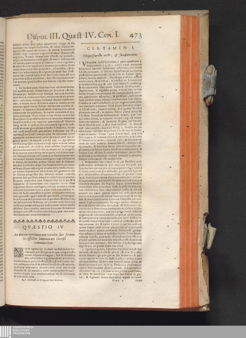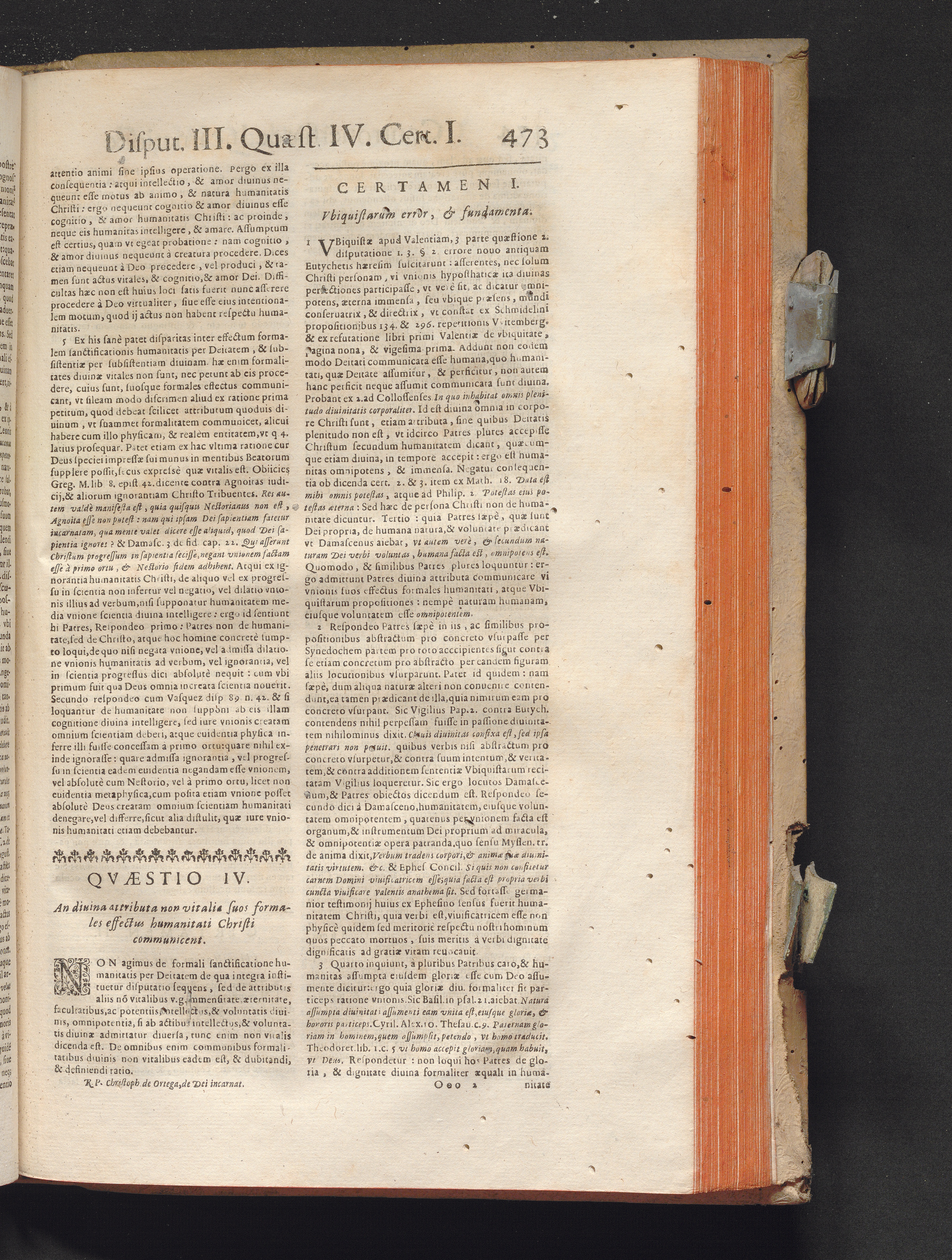 R. P. Christophori de Ortega Sanclementini, E' Societate Iesv. Qvondam in Provincia Toletana Theologiæ Scholasticæ publici Professoris ... Tractatvs Dvo, De Trinitate, Nec non, Incarnatione : Controuersiarum Dogmaticarum & Scholasticarum opus Sanctæ Inquisitionis Censoribus, & Scholasticis Theologis perutile. Iuncto quadruplici Indice