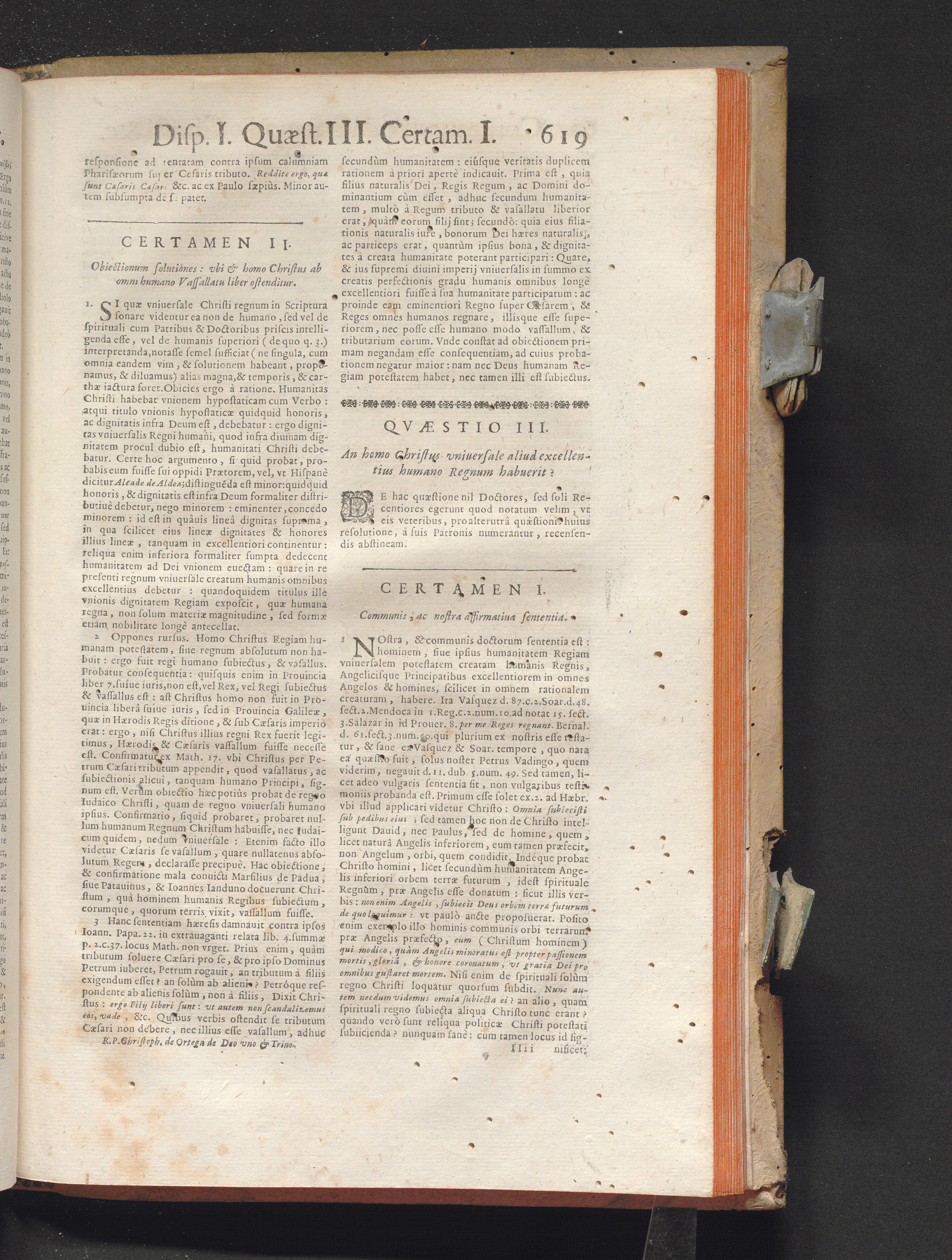 R. P. Christophori de Ortega Sanclementini, E' Societate Iesv. Qvondam in Provincia Toletana Theologiæ Scholasticæ publici Professoris ... Tractatvs Dvo, De Trinitate, Nec non, Incarnatione : Controuersiarum Dogmaticarum & Scholasticarum opus Sanctæ Inquisitionis Censoribus, & Scholasticis Theologis perutile. Iuncto quadruplici Indice