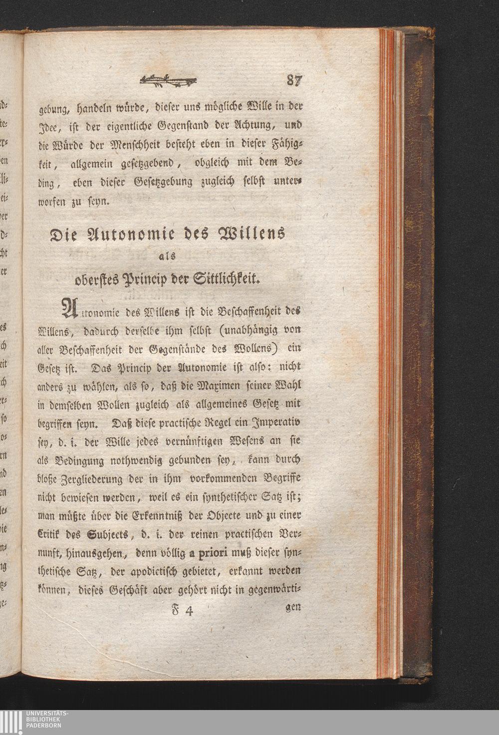 Die Autonomie des Willens als oberstes Princip der Sittlichkeit.