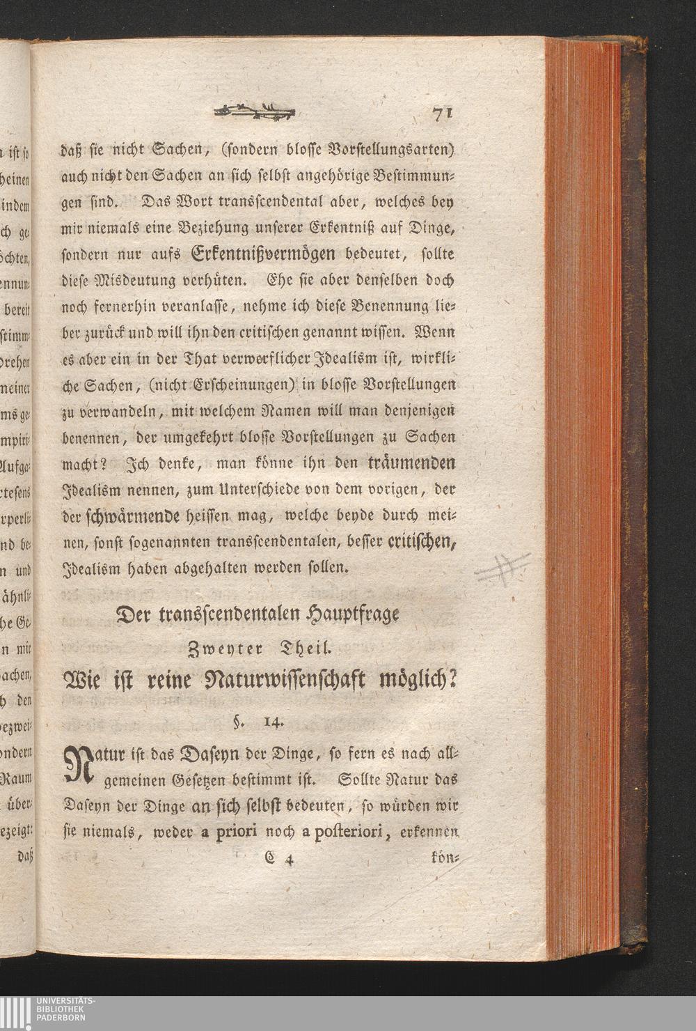 Der transscendentalen Hauptfrage Zweyter Theil. Wie ist reine Naturwissenschaft [...]