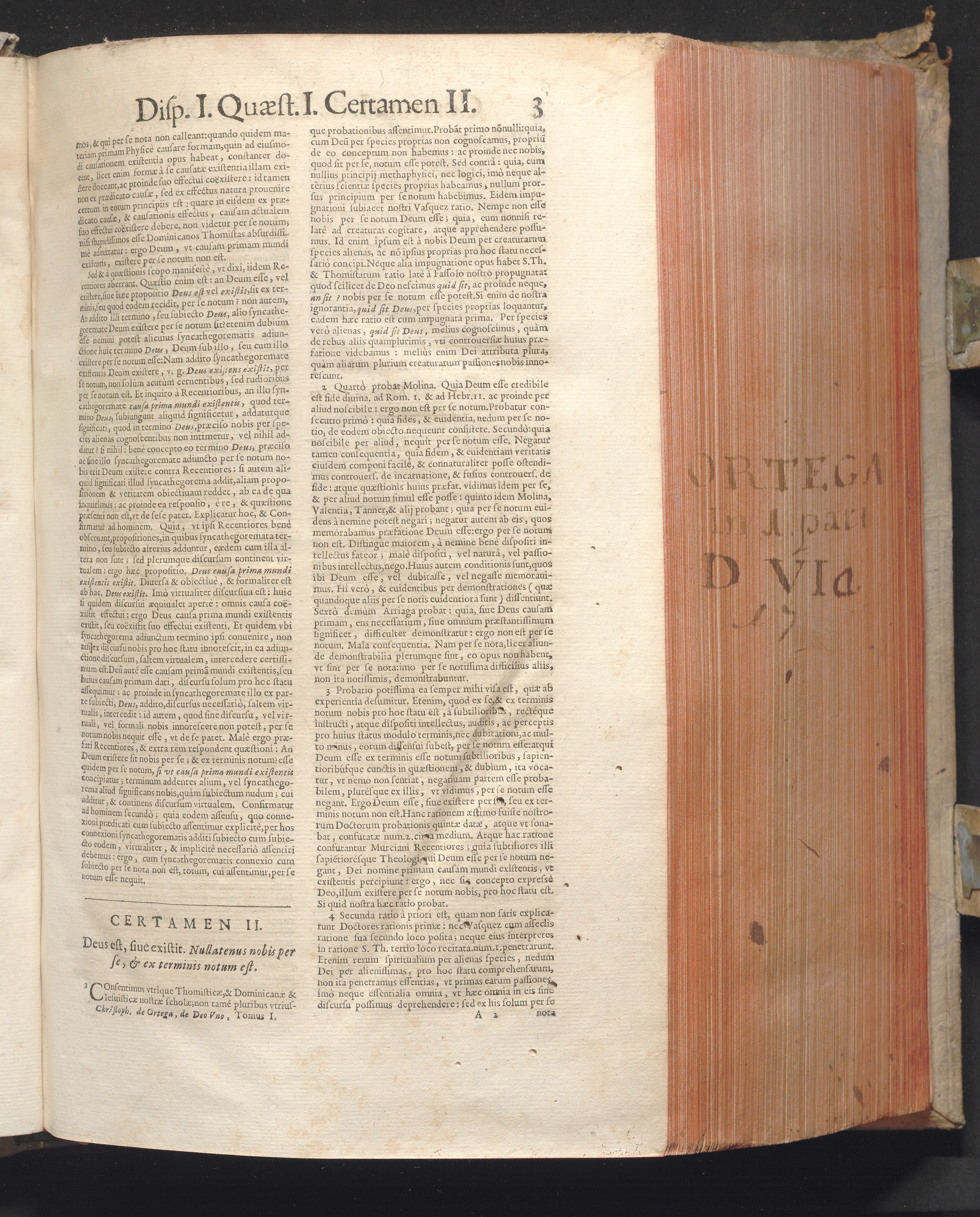 1 (1680) R. P. Christophori De Ortega È Societate Iesu, Quondam Scolasticæ Theologiæ publici Professoris, ac ejusdem Facultatis Præfecti ... Theologia Controversiarum Dogmaticarum, & Scholasticarum, de Divina Essentia, Attributis non vitalibus, de Scientia, & de Decreto concurrendi cum causis liberis