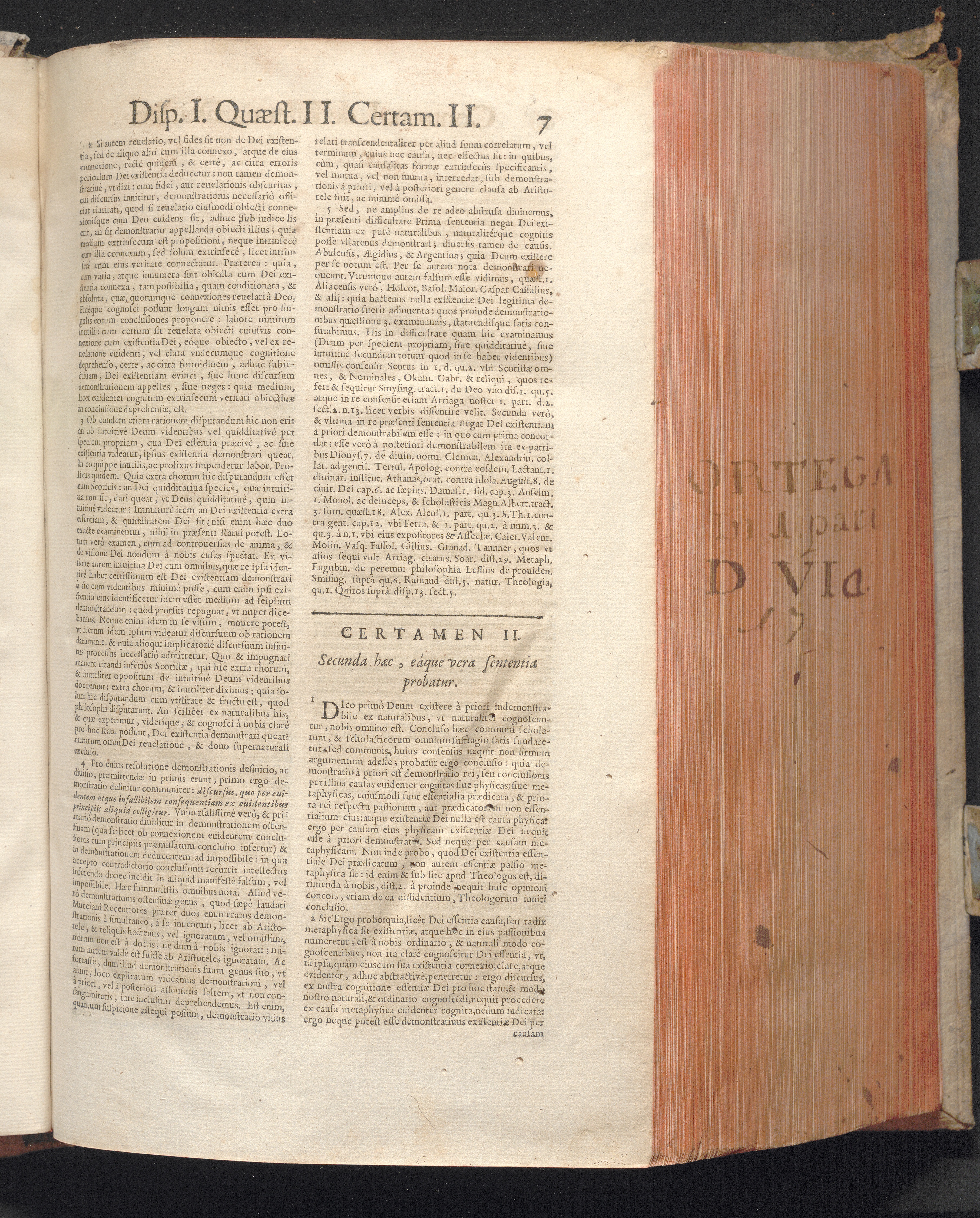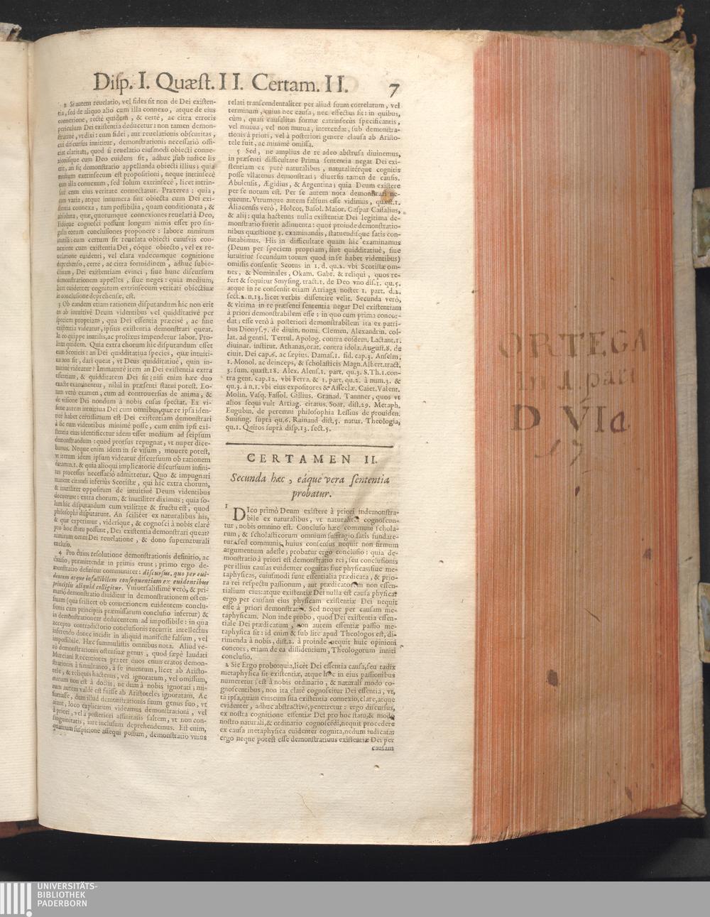 1 (1680) R. P. Christophori De Ortega È Societate Iesu, Quondam Scolasticæ Theologiæ publici Professoris, ac ejusdem Facultatis Præfecti ... Theologia Controversiarum Dogmaticarum, & Scholasticarum, de Divina Essentia, Attributis non vitalibus, de Scientia, & de Decreto concurrendi cum causis liberis