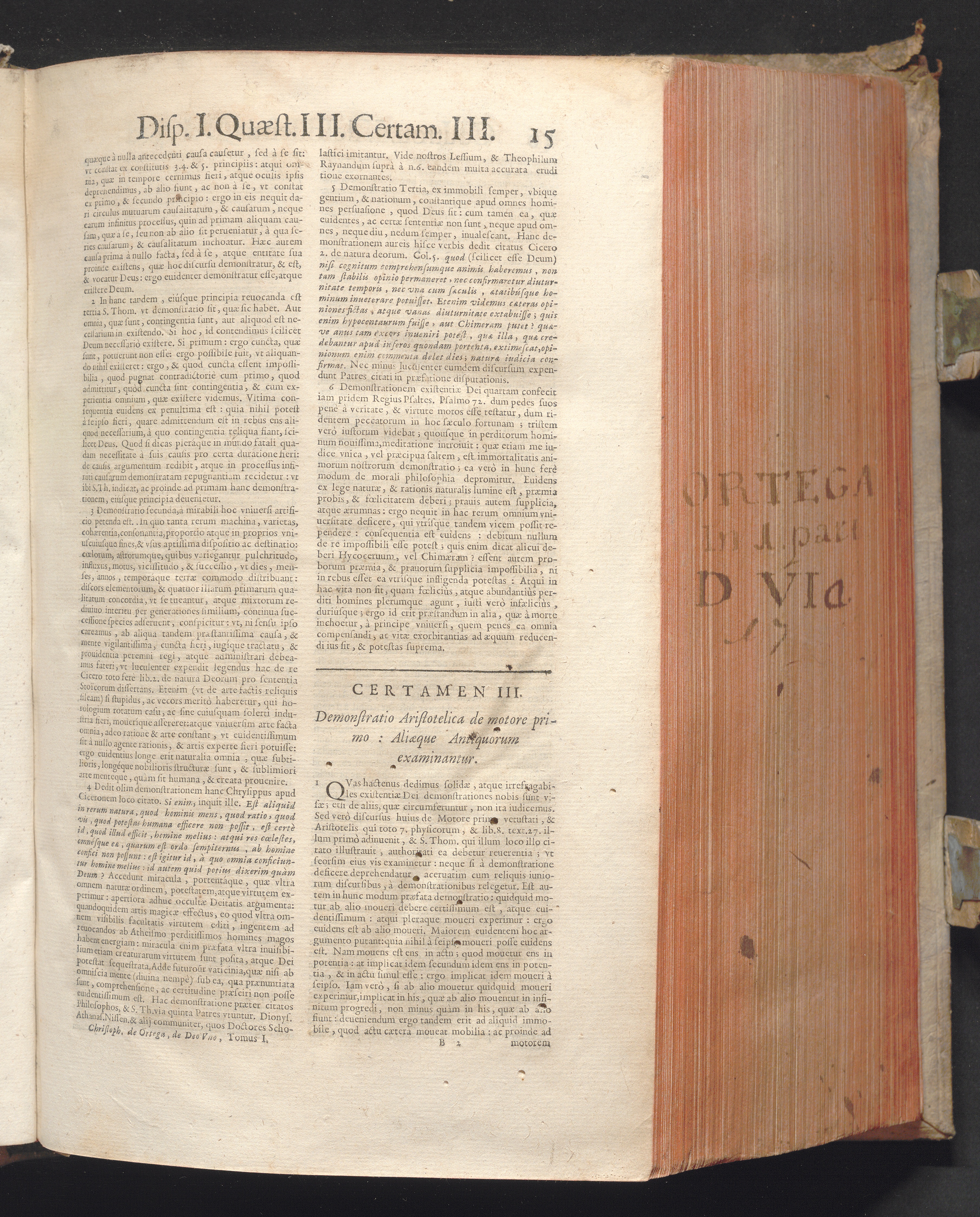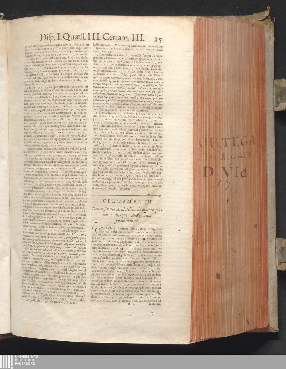 1 (1680) R. P. Christophori De Ortega È Societate Iesu, Quondam Scolasticæ Theologiæ publici Professoris, ac ejusdem Facultatis Præfecti ... Theologia Controversiarum Dogmaticarum, & Scholasticarum, de Divina Essentia, Attributis non vitalibus, de Scientia, & de Decreto concurrendi cum causis liberis