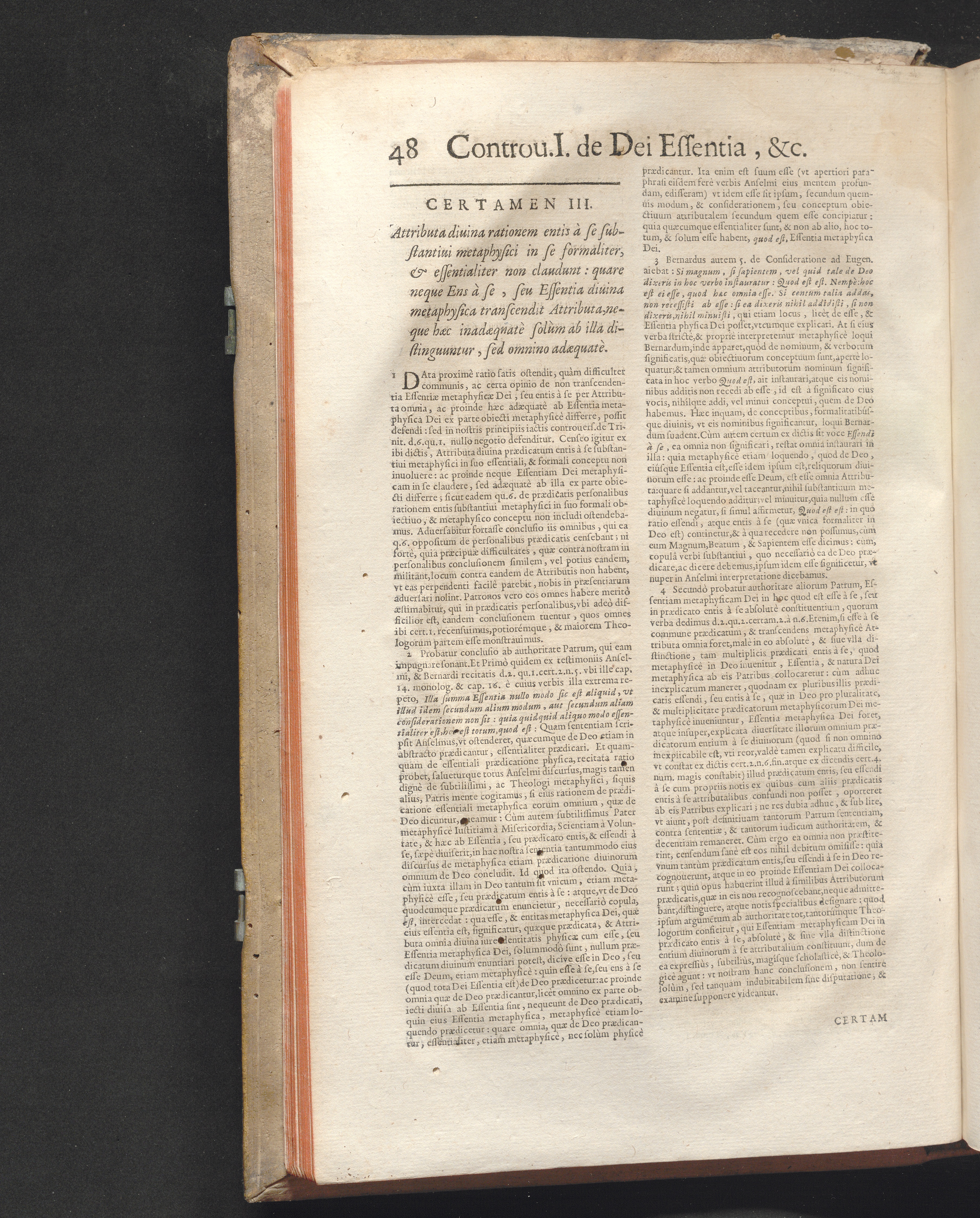 1 (1680) R. P. Christophori De Ortega È Societate Iesu, Quondam Scolasticæ Theologiæ publici Professoris, ac ejusdem Facultatis Præfecti ... Theologia Controversiarum Dogmaticarum, & Scholasticarum, de Divina Essentia, Attributis non vitalibus, de Scientia, & de Decreto concurrendi cum causis liberis