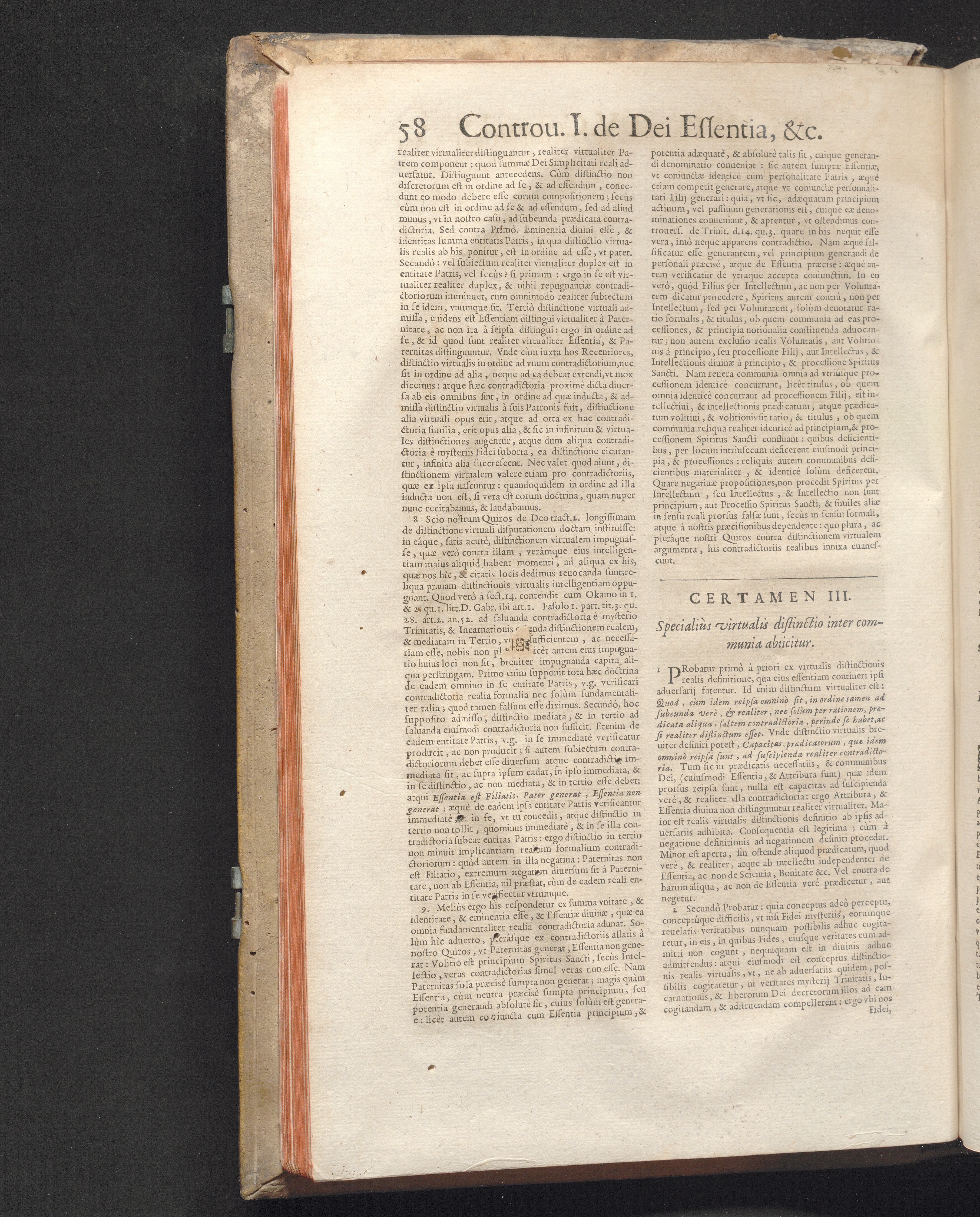 1 (1680) R. P. Christophori De Ortega È Societate Iesu, Quondam Scolasticæ Theologiæ publici Professoris, ac ejusdem Facultatis Præfecti ... Theologia Controversiarum Dogmaticarum, & Scholasticarum, de Divina Essentia, Attributis non vitalibus, de Scientia, & de Decreto concurrendi cum causis liberis