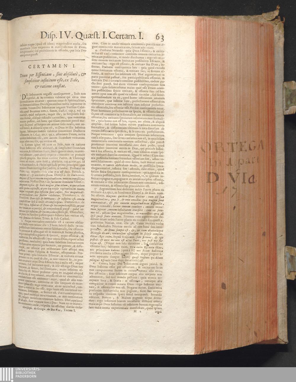 1 (1680) R. P. Christophori De Ortega È Societate Iesu, Quondam Scolasticæ Theologiæ publici Professoris, ac ejusdem Facultatis Præfecti ... Theologia Controversiarum Dogmaticarum, & Scholasticarum, de Divina Essentia, Attributis non vitalibus, de Scientia, & de Decreto concurrendi cum causis liberis