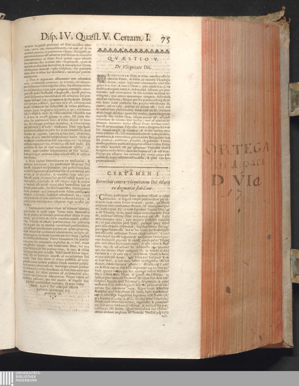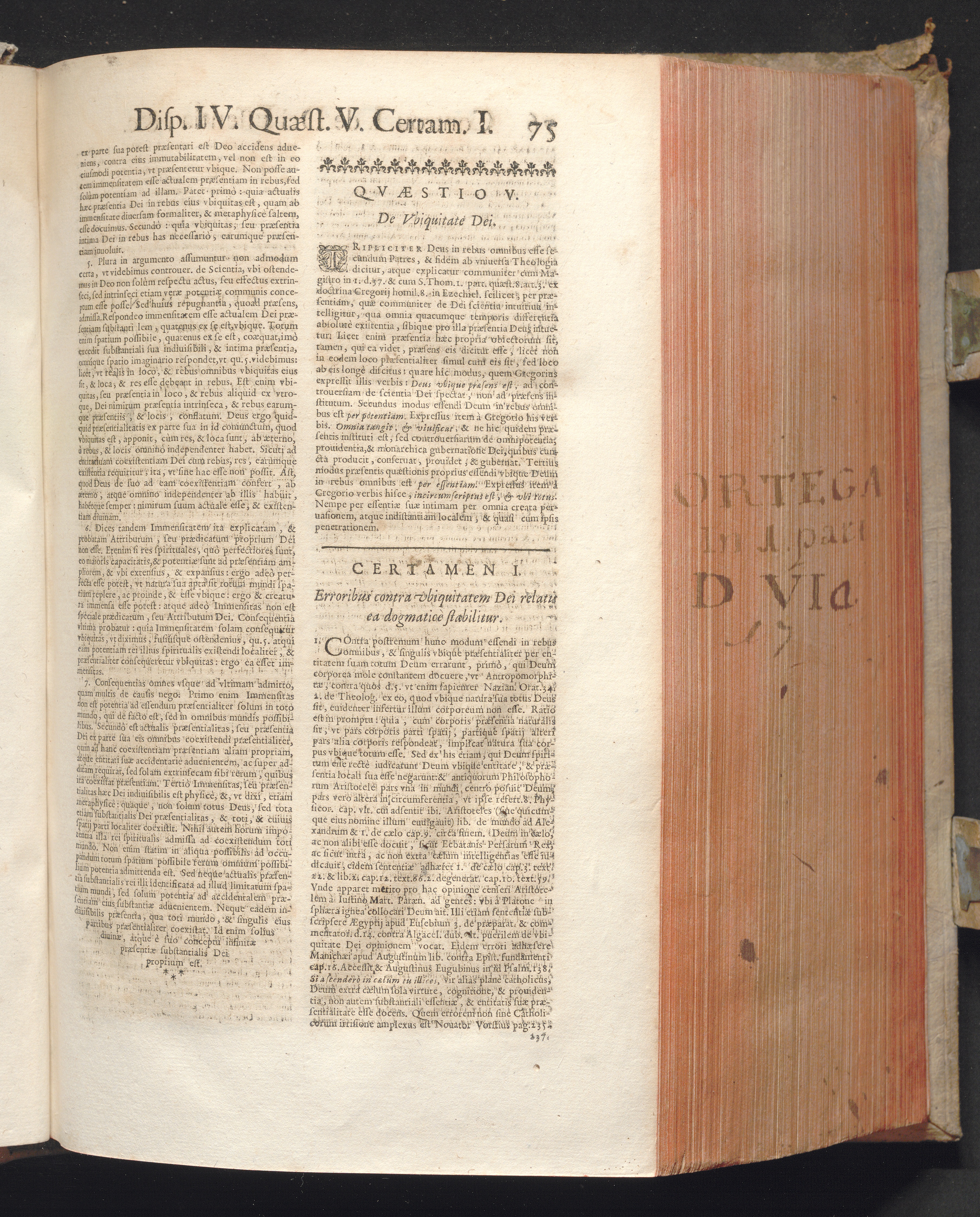 1 (1680) R. P. Christophori De Ortega È Societate Iesu, Quondam Scolasticæ Theologiæ publici Professoris, ac ejusdem Facultatis Præfecti ... Theologia Controversiarum Dogmaticarum, & Scholasticarum, de Divina Essentia, Attributis non vitalibus, de Scientia, & de Decreto concurrendi cum causis liberis