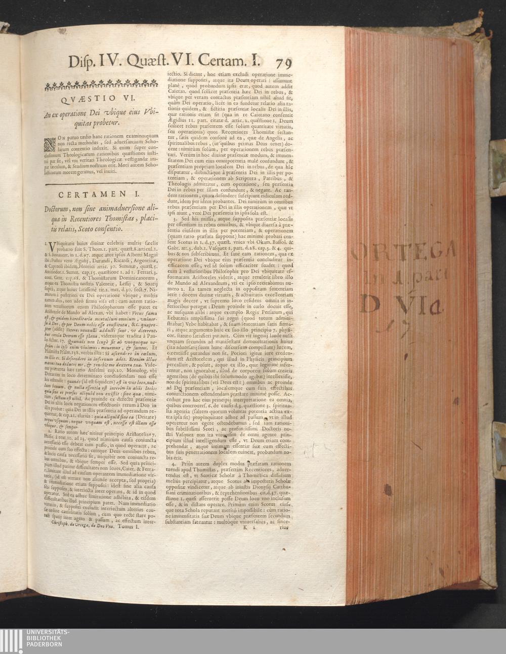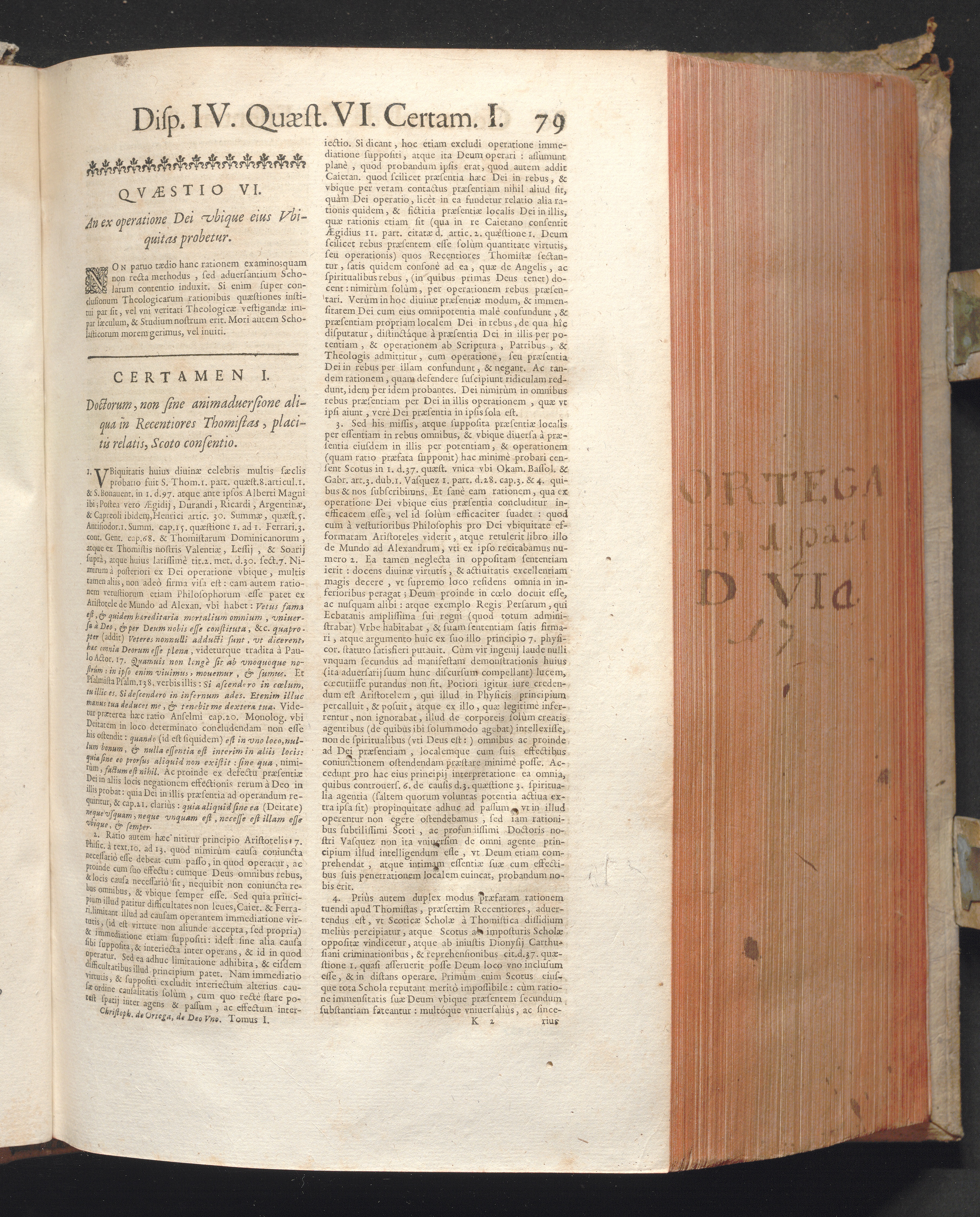 1 (1680) R. P. Christophori De Ortega È Societate Iesu, Quondam Scolasticæ Theologiæ publici Professoris, ac ejusdem Facultatis Præfecti ... Theologia Controversiarum Dogmaticarum, & Scholasticarum, de Divina Essentia, Attributis non vitalibus, de Scientia, & de Decreto concurrendi cum causis liberis