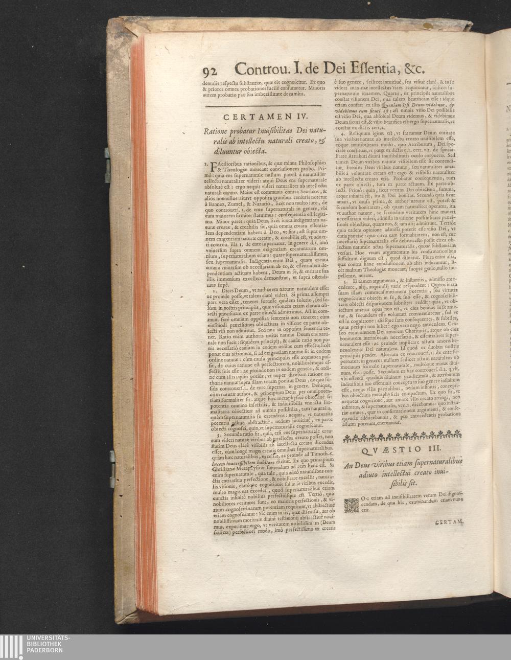1 (1680) R. P. Christophori De Ortega È Societate Iesu, Quondam Scolasticæ Theologiæ publici Professoris, ac ejusdem Facultatis Præfecti ... Theologia Controversiarum Dogmaticarum, & Scholasticarum, de Divina Essentia, Attributis non vitalibus, de Scientia, & de Decreto concurrendi cum causis liberis