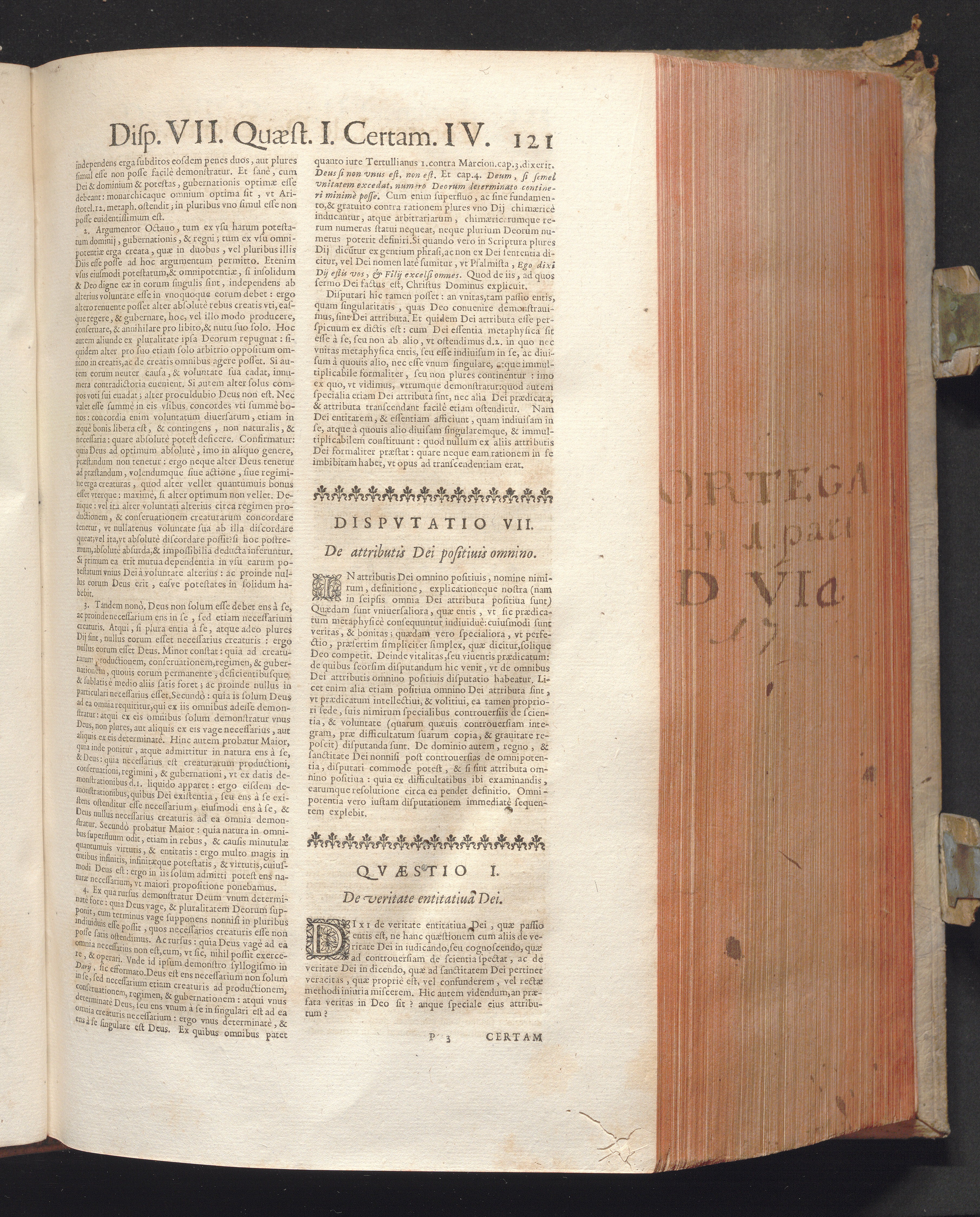 1 (1680) R. P. Christophori De Ortega È Societate Iesu, Quondam Scolasticæ Theologiæ publici Professoris, ac ejusdem Facultatis Præfecti ... Theologia Controversiarum Dogmaticarum, & Scholasticarum, de Divina Essentia, Attributis non vitalibus, de Scientia, & de Decreto concurrendi cum causis liberis