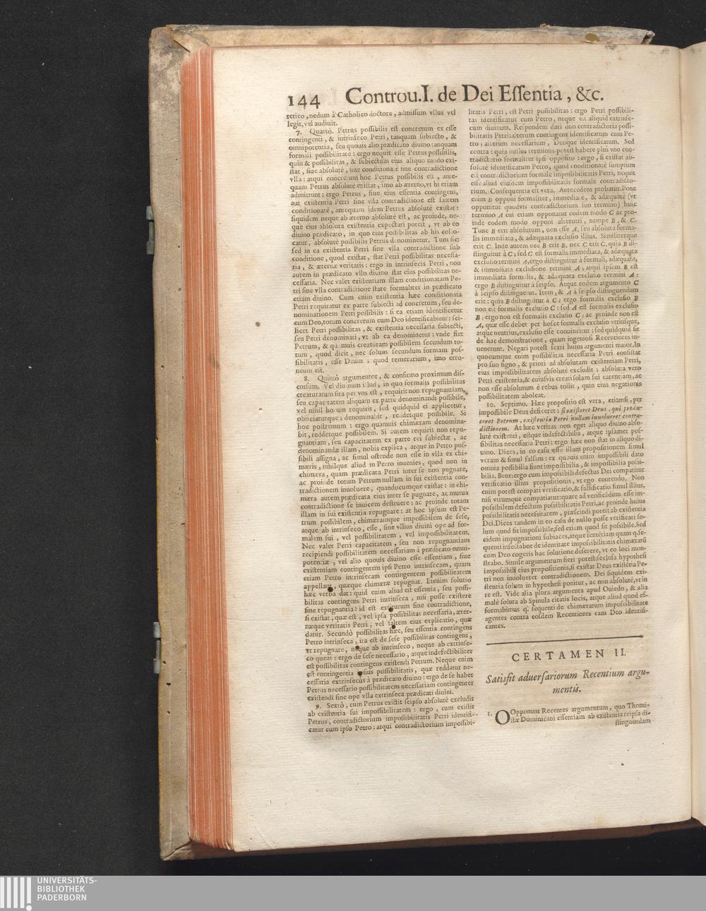 1 (1680) R. P. Christophori De Ortega È Societate Iesu, Quondam Scolasticæ Theologiæ publici Professoris, ac ejusdem Facultatis Præfecti ... Theologia Controversiarum Dogmaticarum, & Scholasticarum, de Divina Essentia, Attributis non vitalibus, de Scientia, & de Decreto concurrendi cum causis liberis
