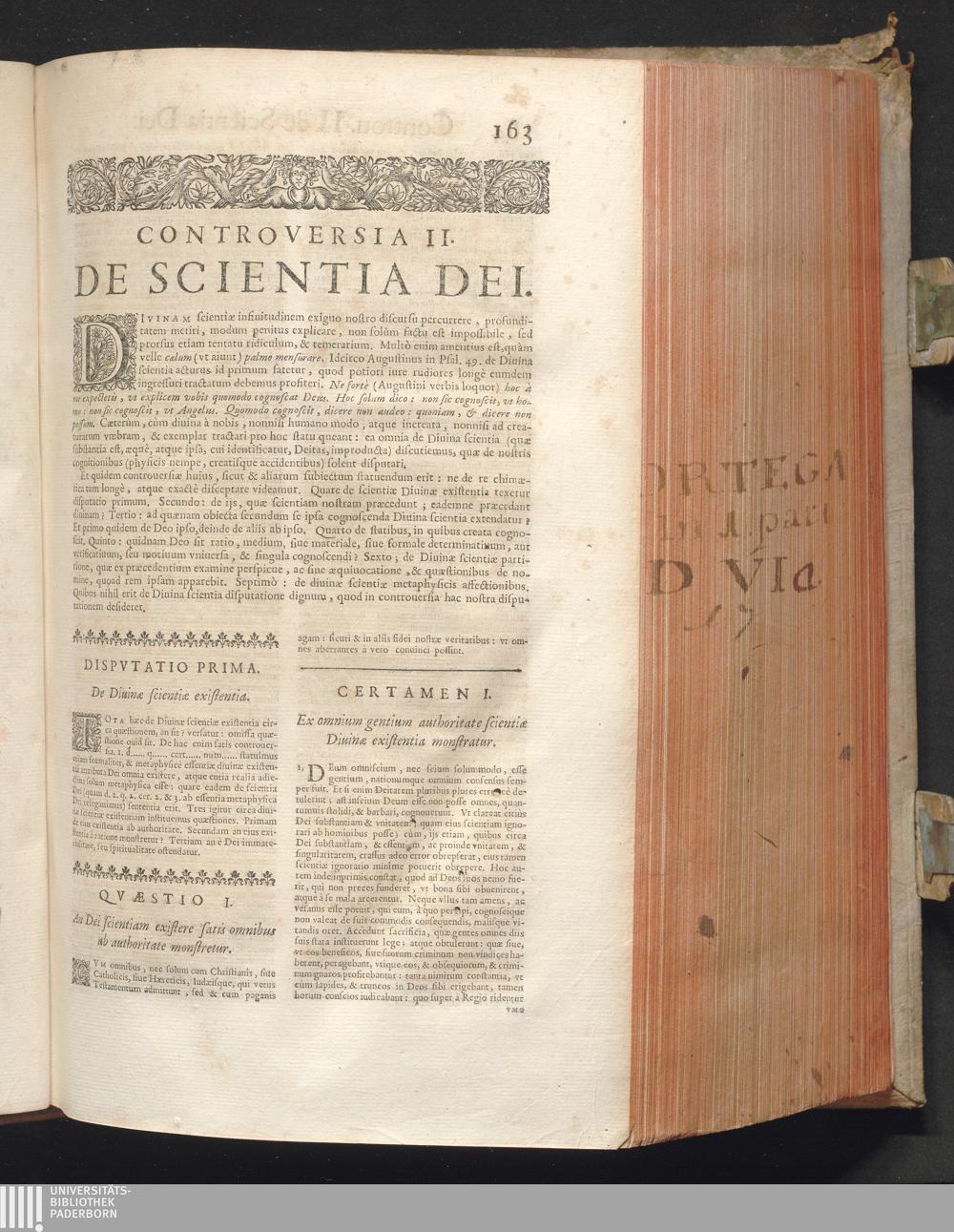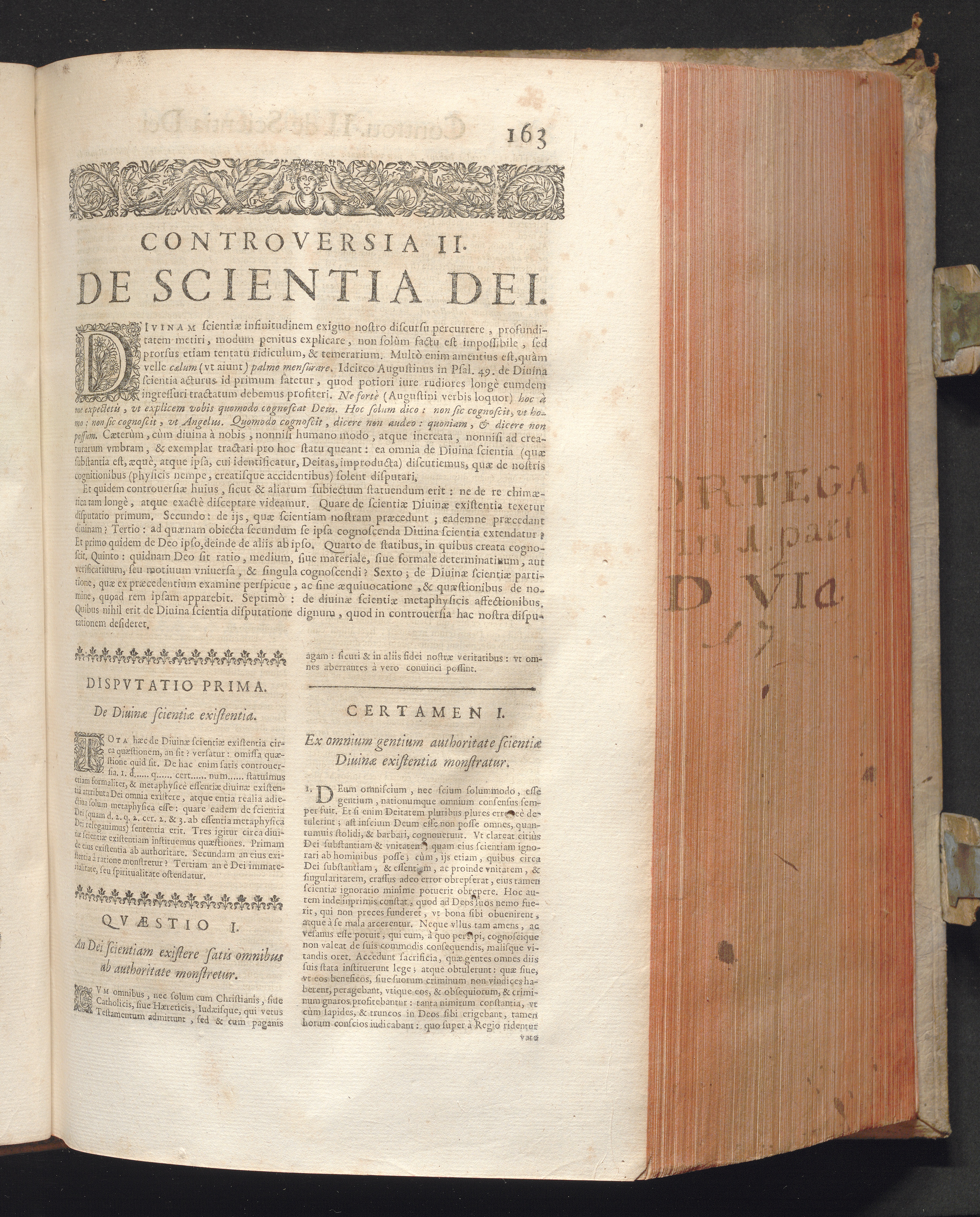 1 (1680) R. P. Christophori De Ortega È Societate Iesu, Quondam Scolasticæ Theologiæ publici Professoris, ac ejusdem Facultatis Præfecti ... Theologia Controversiarum Dogmaticarum, & Scholasticarum, de Divina Essentia, Attributis non vitalibus, de Scientia, & de Decreto concurrendi cum causis liberis